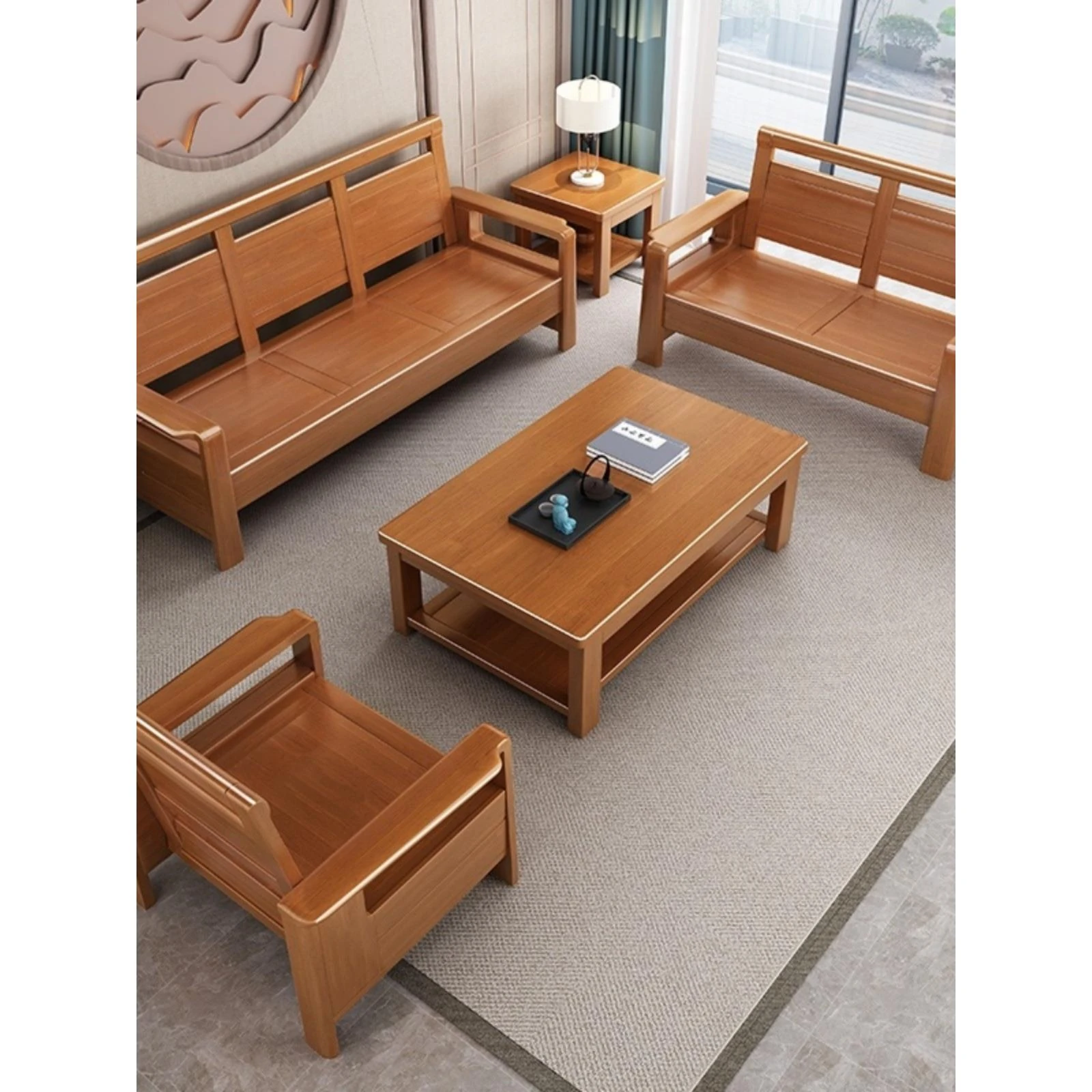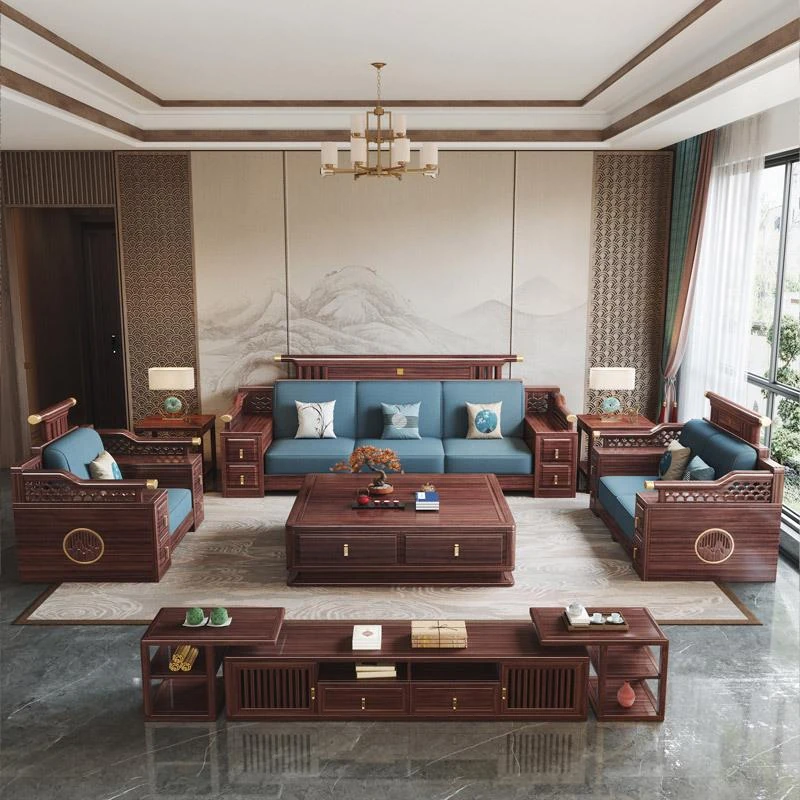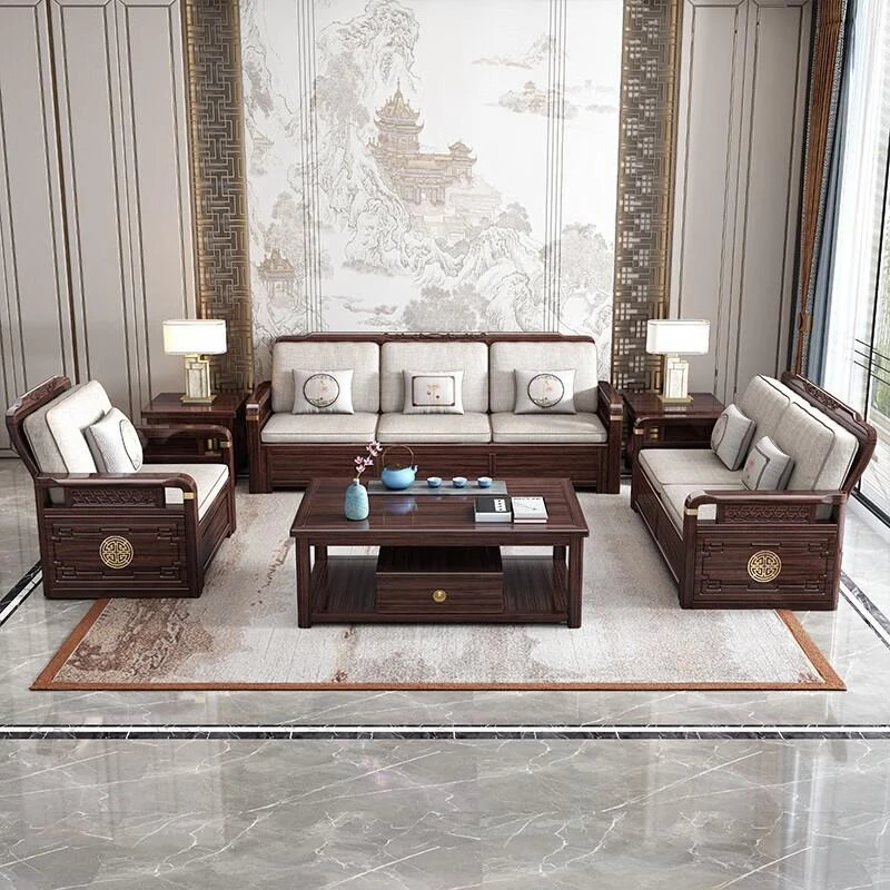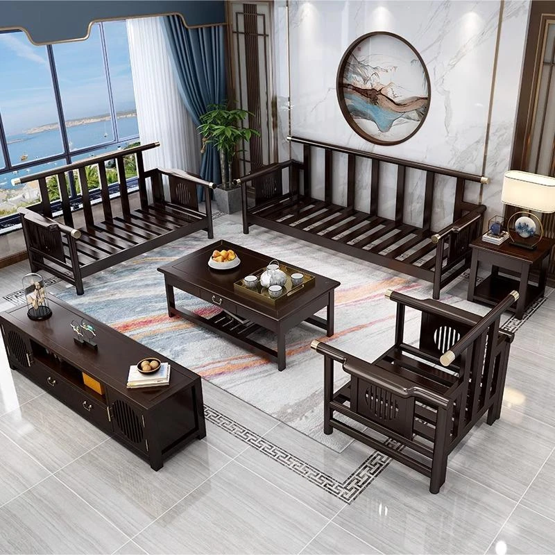 中華スタイルの冬夏兼用本木製ソファ・カウチ 1+2+3テーブルセット 小型リビングに最適なシンプルで経済的な家具