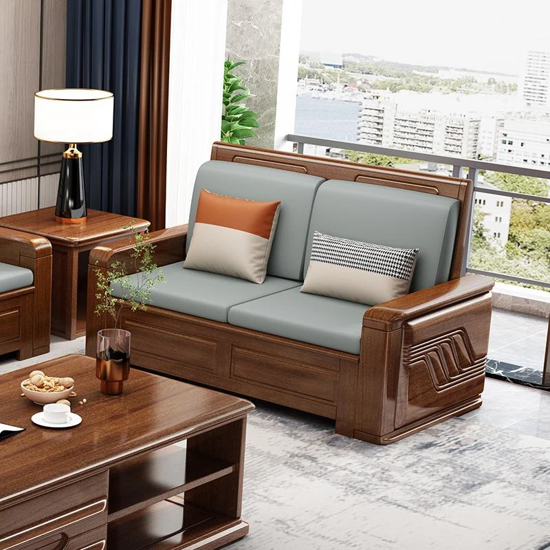 新中式全実木ソファー ウーキン材使用のシンプル収納型リビングソファー 組み合わせ自在 家庭用にぴったりな高級感あふれる家具