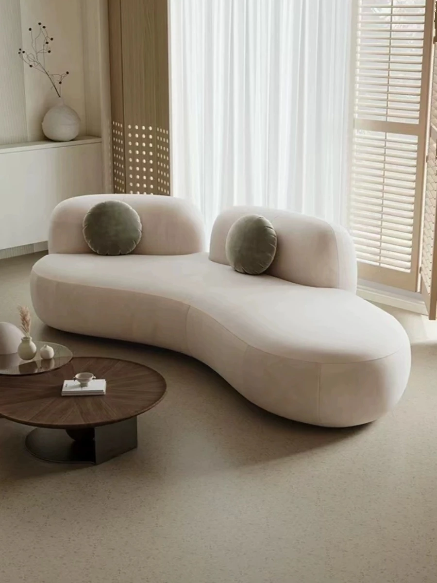 クリーミーな侘び寂び風ソファ|小型ハーフアーチ型|人気のファッション店舗や美容院に最適|リラックスした休憩スペースを演出!