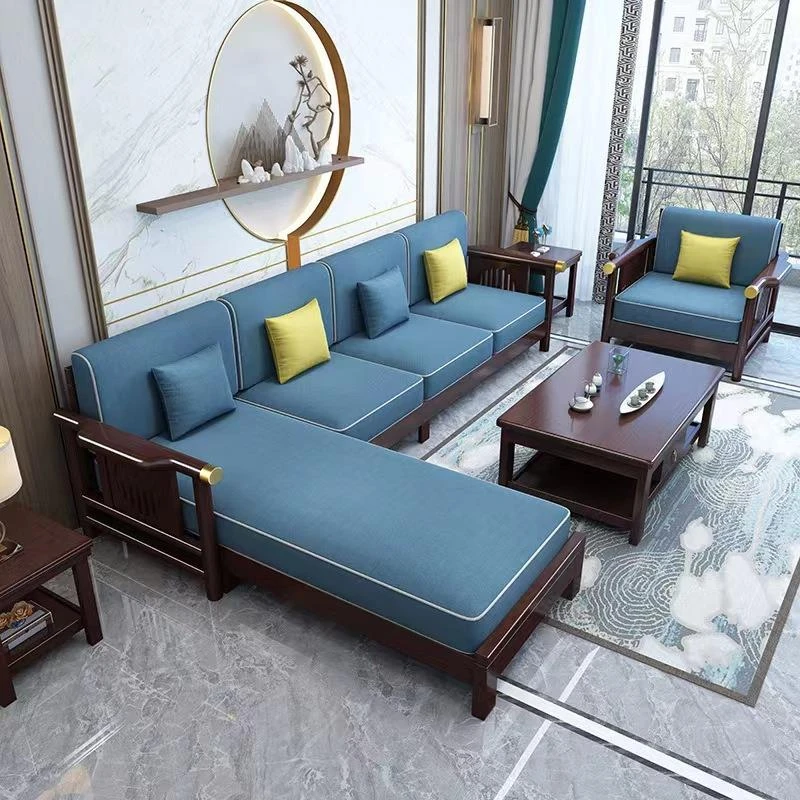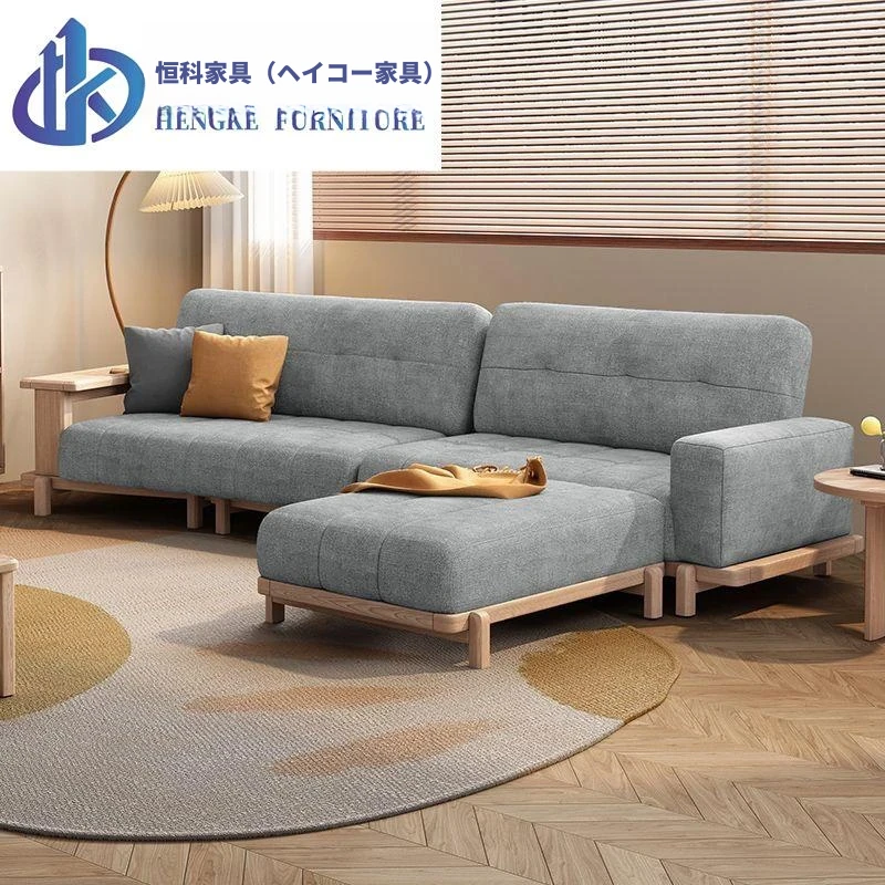 新中式スタイルの無垢材ソファ・コーナーベンチソファセット!モダンでシンプルなデザイン、ミディアムサイズのリビングに最適!高品質な木製とファブリックの組み合わせで、快適な空間を演出します。