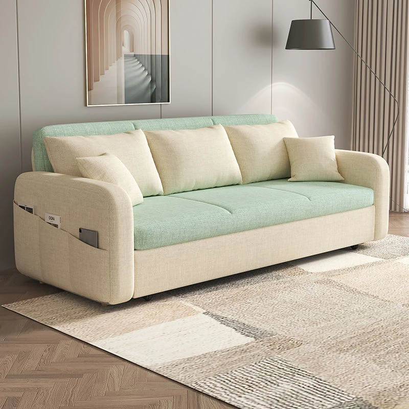 北欧風の小型多機能ソファベッド - 折りたたみ式 & 引き出し収納付き、リビングや寝室に最適なデザイン!おしゃれで実用的な二人用ソファで、スペースを有効活用!