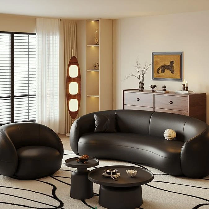 イタリアンヴィンテージソファ|モダンミニマリストデザイン|小さなリビングや美容院の休憩スペースに最適なブラックアーチ型ソファ|スタイリッシュで快適な空間を演出します!