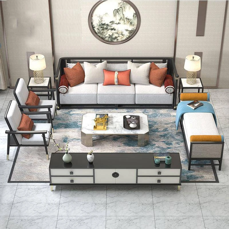 工場直送!スタイリッシュな木製コンビネーションソファ - 高級感あふれるモデルルーム用、74141号の新しい軽奢華なデザイン、販売所や店舗にぴったり!
