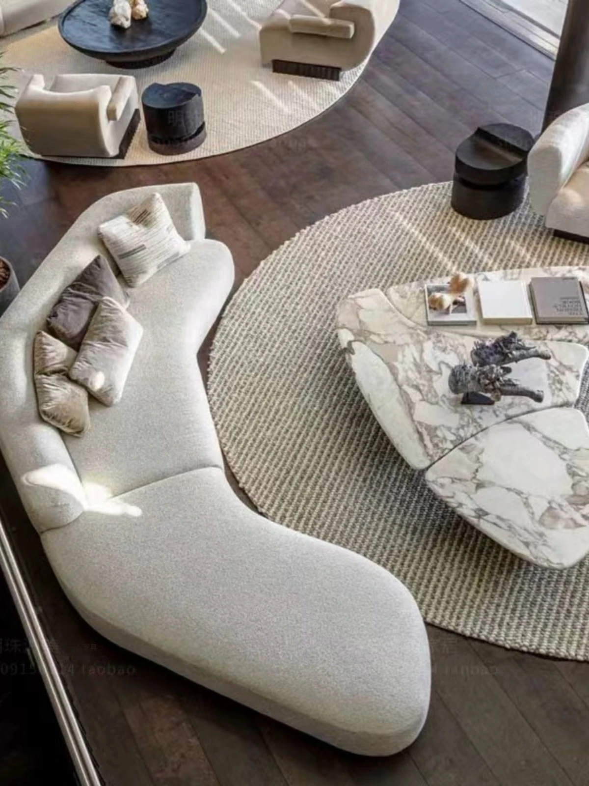 北欧風ミニマルデザインの曲線ソファ|現代的なクリエイティブな接合|コーナー・デイベッド・多人数用ファブリックソファで、心地よい空間を演出!