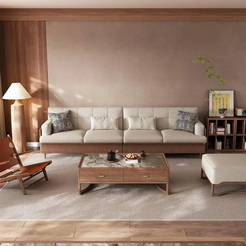 高級感溢れる新中式スタイルの無垢材ソファセット!北米産のブラックウォールナットを使用した三人掛けソファ。柔らかなクッションと堅牢なフレームが贅沢なひとときを提供します。おしゃれで落ち着いた空間を演出する家具です。