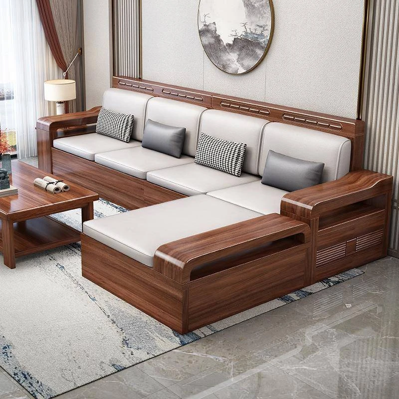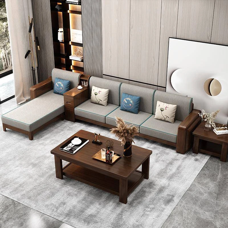 ウォールナット製 中式モダンソファ 全て無垢材使用 冬夏兼用 リビング収納ソファ コーナー&デイベッドコンビネーションで、スタイリッシュで機能的な空間を演出!