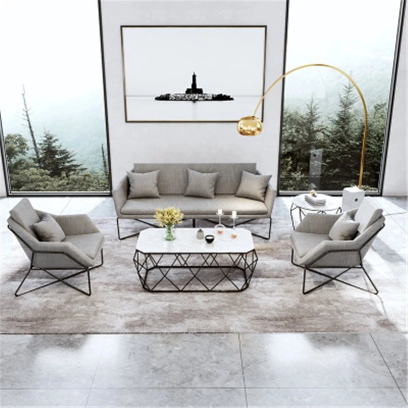 モダンシンプルなファブリックソファ オフィスやリビングにぴったりのEテーブルセット アイアン製のビジネス接待ソファで、スタイリッシュな空間を演出!快適なひとときを提供します。