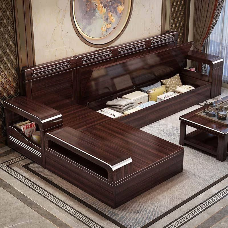 新中式紫金檀木製全実木ソファー - 冬夏兼用、現代的な中式デザインの貴妃型コーナー収納ソファーで、リビングにスタイリッシュな彩りを添えます!
