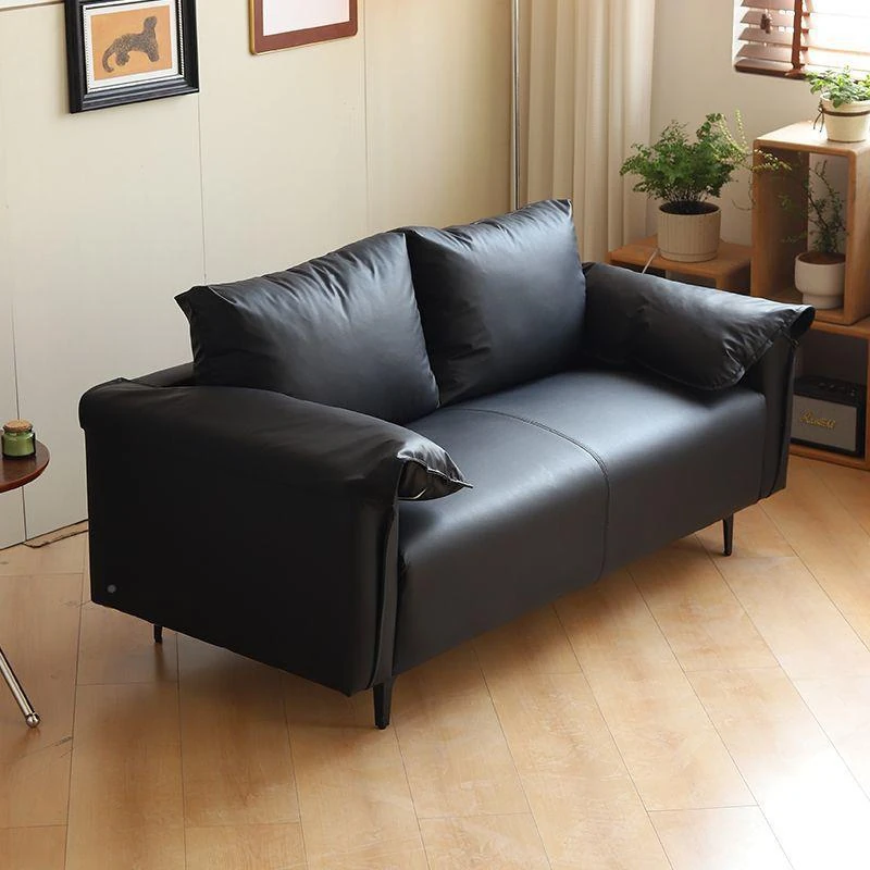 【特別割引】スタイリッシュなブラックレザーソファ - モダンなイタリアンデザイン、コンパクトなリビングに最適!おしゃれで快適な空間を演出。