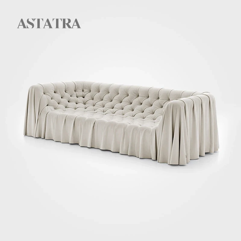 ASTATRA Busnelliスカート付き引きひもソファ|イタリアンマットレザー使用の和モダンデザイン|シンプルで洗練されたリビング空間に最適!
