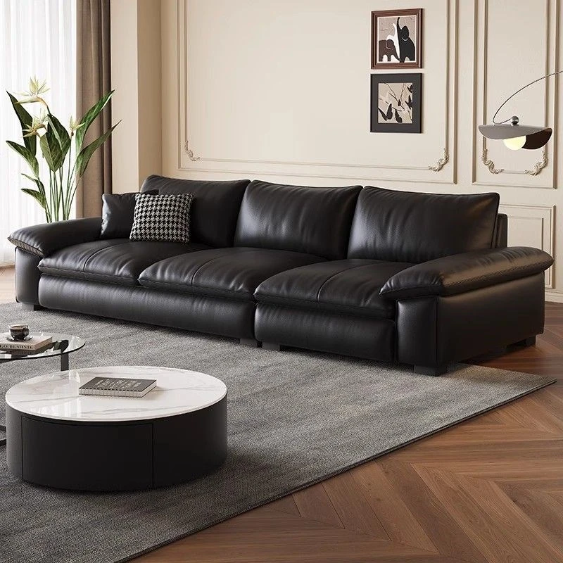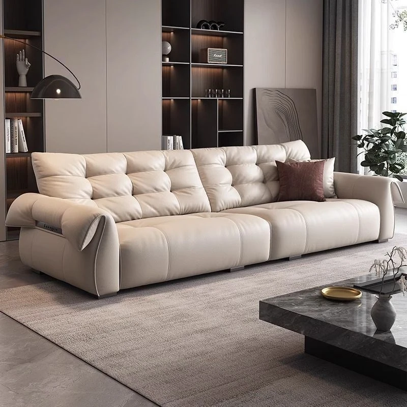 イタリアンスタイルのラグジュアリー本革ソファ - シンプルで現代的なデザイン、ハイグレードの牛革使用。リビングルームや様々な広さの部屋に最適な直列アイアンソファ。おしゃれで快適な空間を演出します!