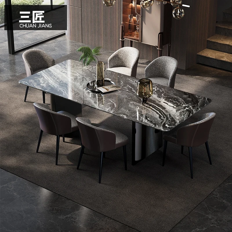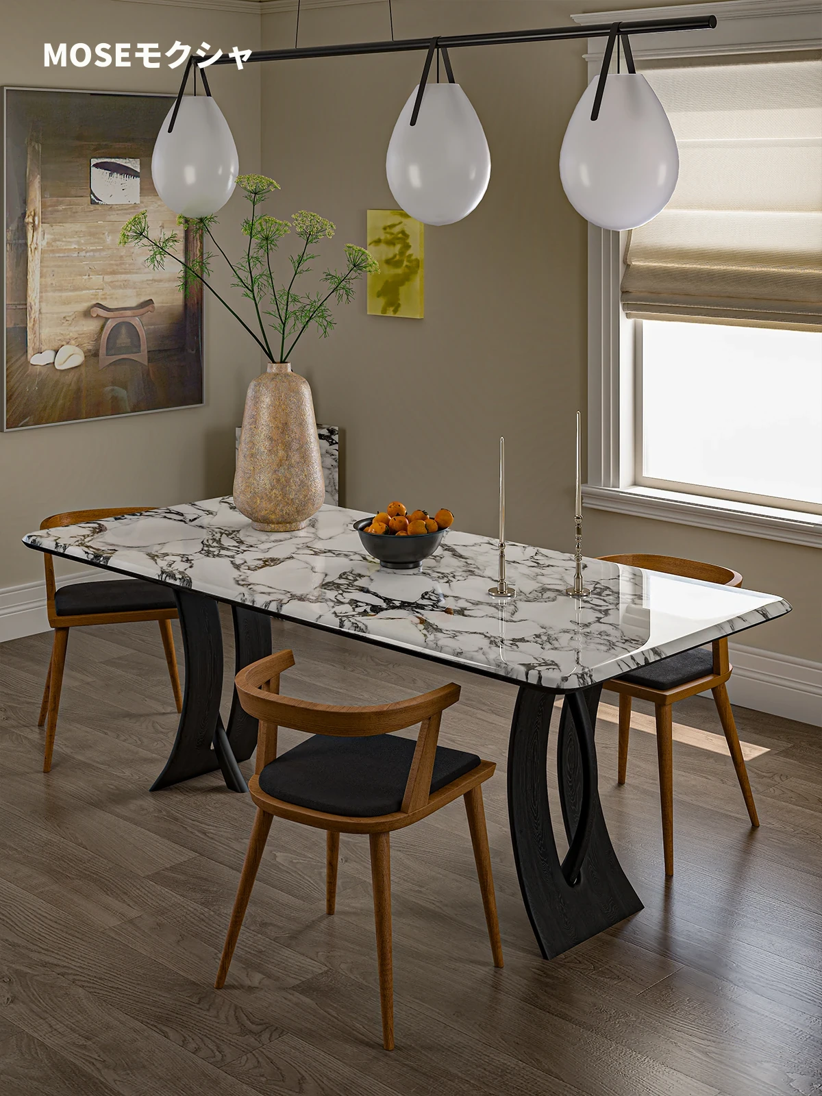 輸入自然石の高級大理石ダイニングテーブルセット 新作長方形デザイン 高級感あふれる別荘向けダイニングテーブルで、優雅な食卓を演出します。