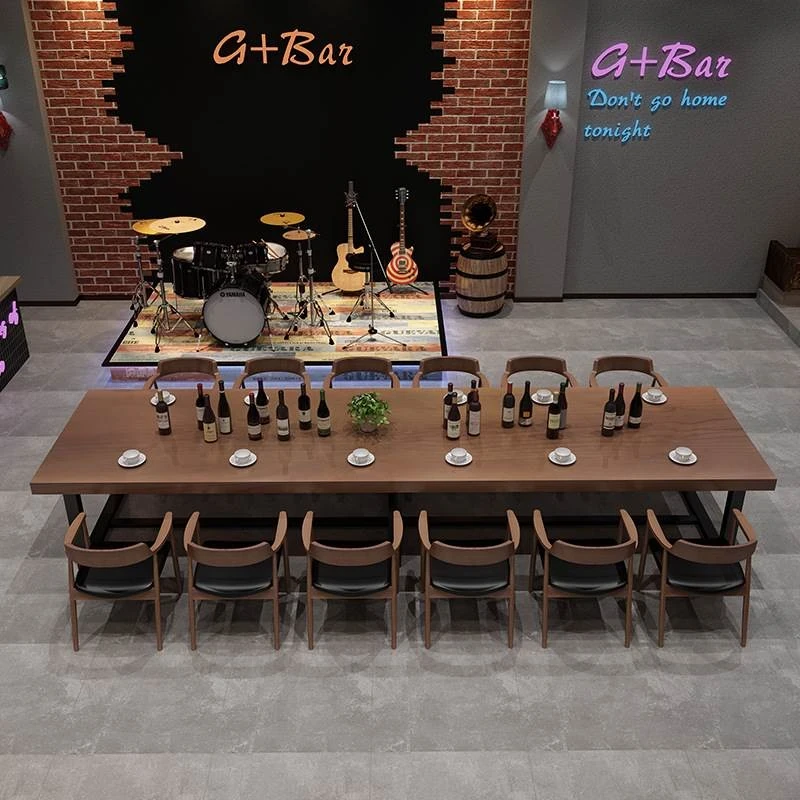 商用レトロテーマの長方形テーブルセット!焼肉、食堂、ファストフードに最適なデザイン!快適なダイニング体験を提供する、魅力的なテーブルと椅子のコンビネーション。あなたの店舗を一層引き立てます!