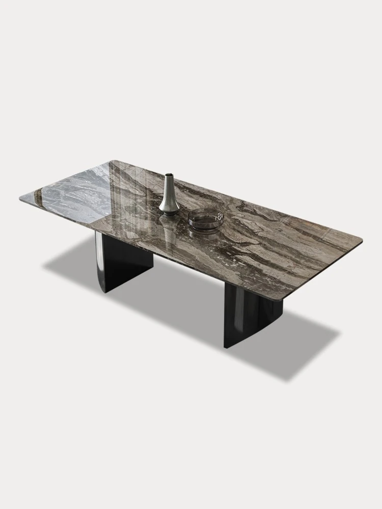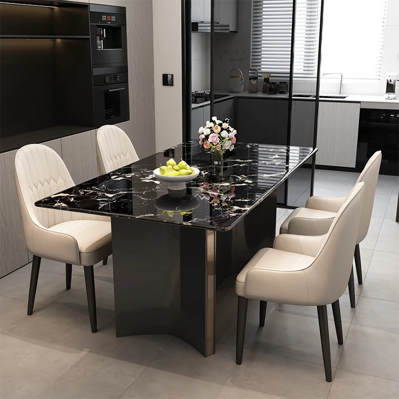 軽やかでラグジュアリーな岩板ダイニングテーブル - イタリアンミニマルスタイルの現代的な長方形テーブルと北欧の大理石チェアのセット。洗練されたデザインで、エレガントな食卓を演出します!