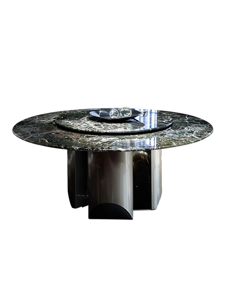 天然プラダグリーン高級石材ダイニングテーブル、ラグジュアリーな別荘向け、回転式円卓、天然大理石製、洗練されたデザインで特別な食事体験を提供します。