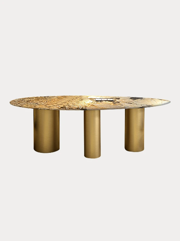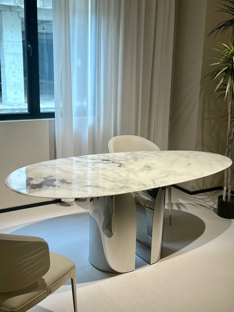 ブルガリ大理石の飛行円卓 - エレガントな楕円形イタリアンミニマリズム、ラグジュアリーな別荘スタイルの高級石製ダイニングテーブル&チェアセットで、洗練された食卓を演出!