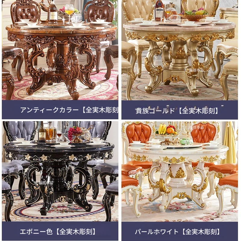 ヨーロピアンスタイルの円形テーブル|全て無垢材使用のアメリカンスタイルダイニングテーブル|家庭用・ホテル用|電動火鍋テーブル|回転式大理石ダイニングテーブル&チェアセット|高級感溢れる美しい食卓を演出!