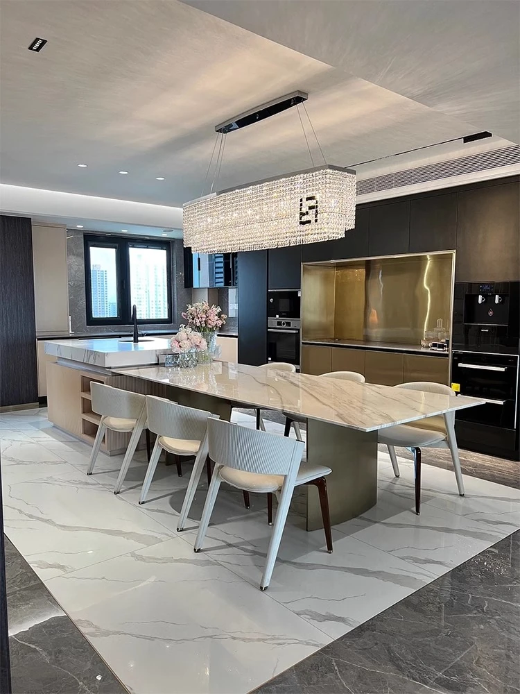Imported Natural Jazz White Luxury Stone Designer Marble Dining Table for Spacious Homes - Italian Minimalist Style Perfect for Modern Living Spaces