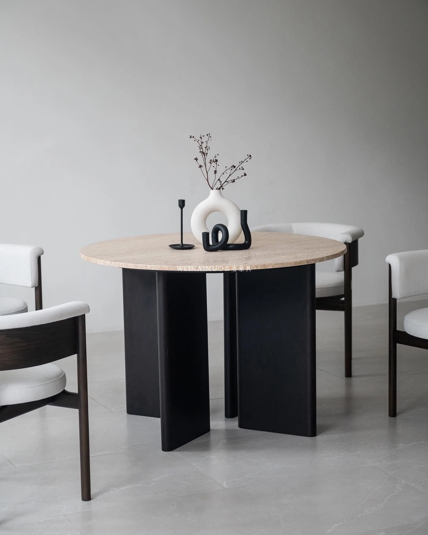 WKN Natural Stone Round Dining Table - Commercial Use White Ash Wood Coffee Table, Wabi-Sabi Style for Balcony & Leisure Spaces