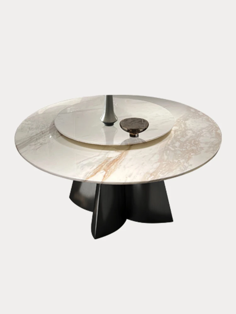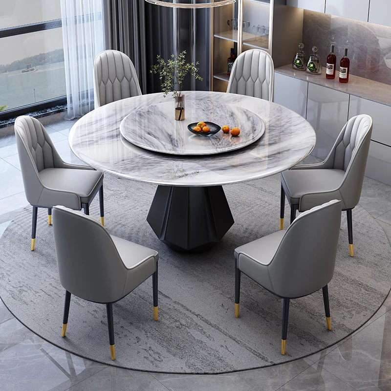Stylish Luxury Ultra-Crystal Stone Dining Table and Chair Set - Modern Minimalist Round Table with Rotating Plate for Home Use