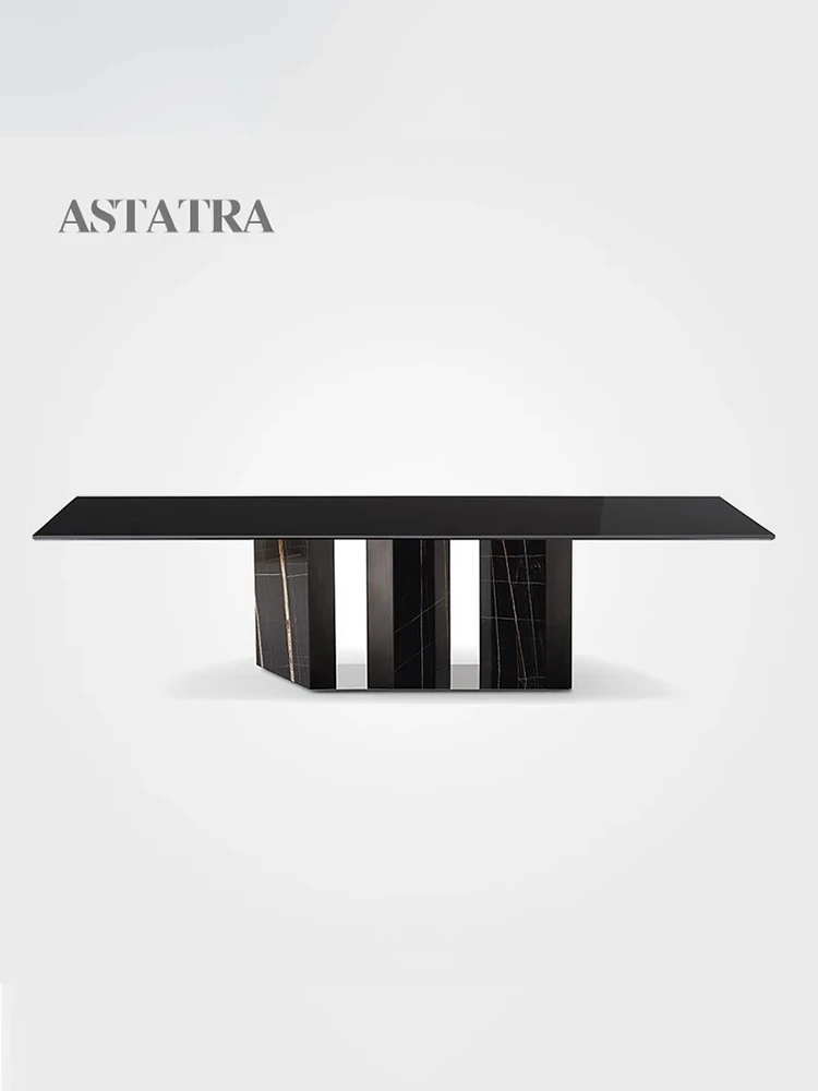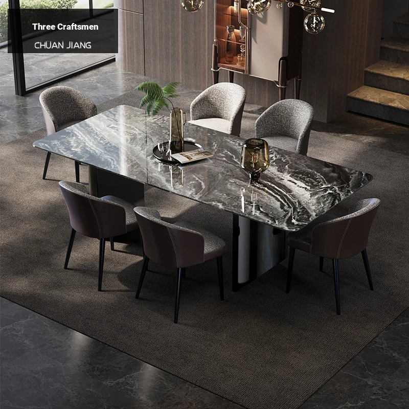 Imported Natural Luxury Marble Dining Table Set - New Rectangular Design for Elegant Villas, Perfect for Upscale Dining Experiences