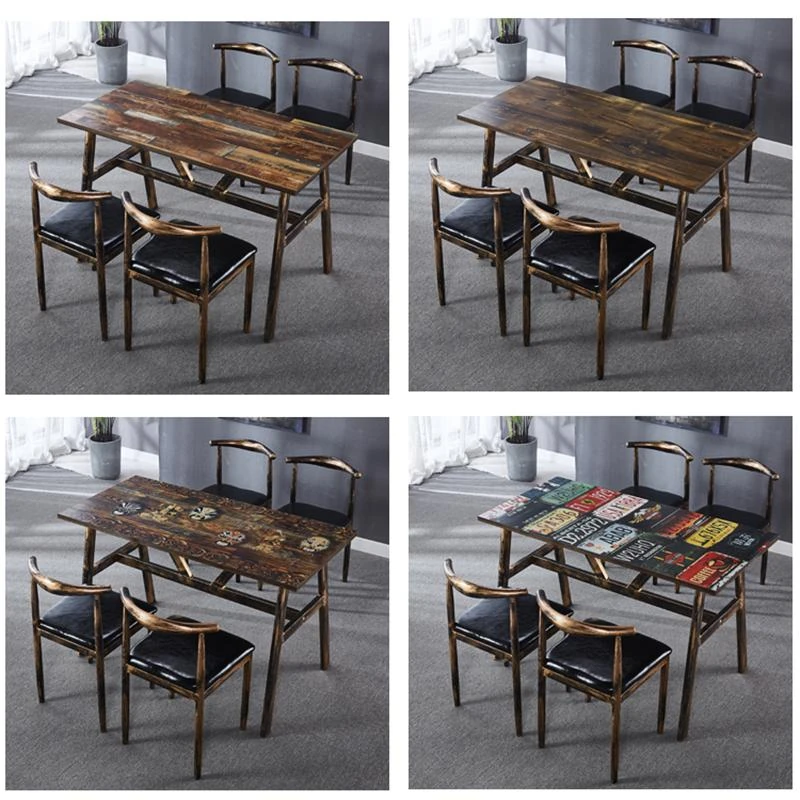 Vintage Rectangular Dining Table Set for Commercial BBQ Restaurants, Snack Bars, and Fast Food Outlets - Perfect for Creating a Cozy Atmosphere!