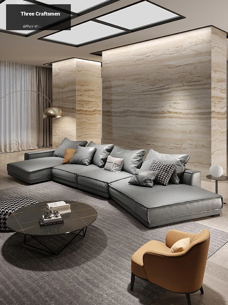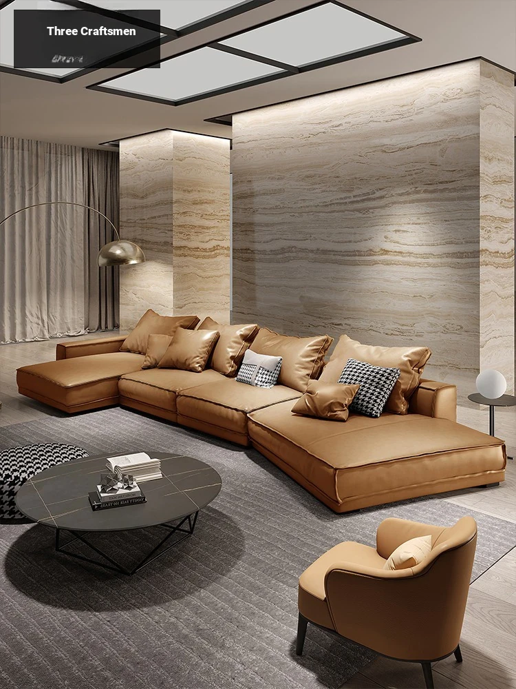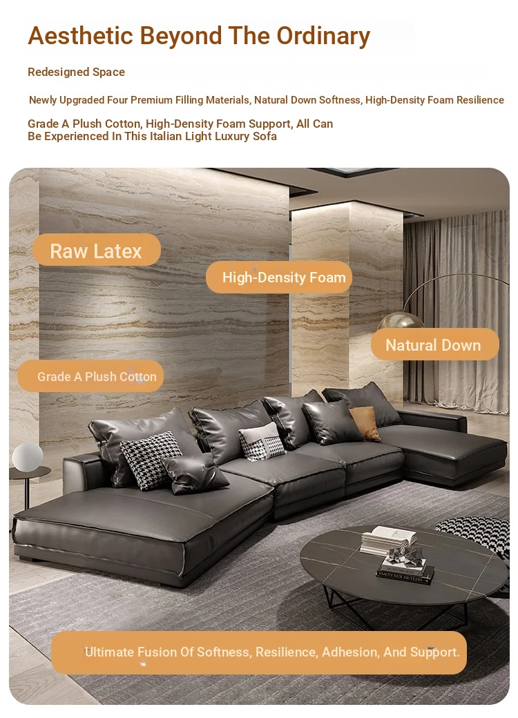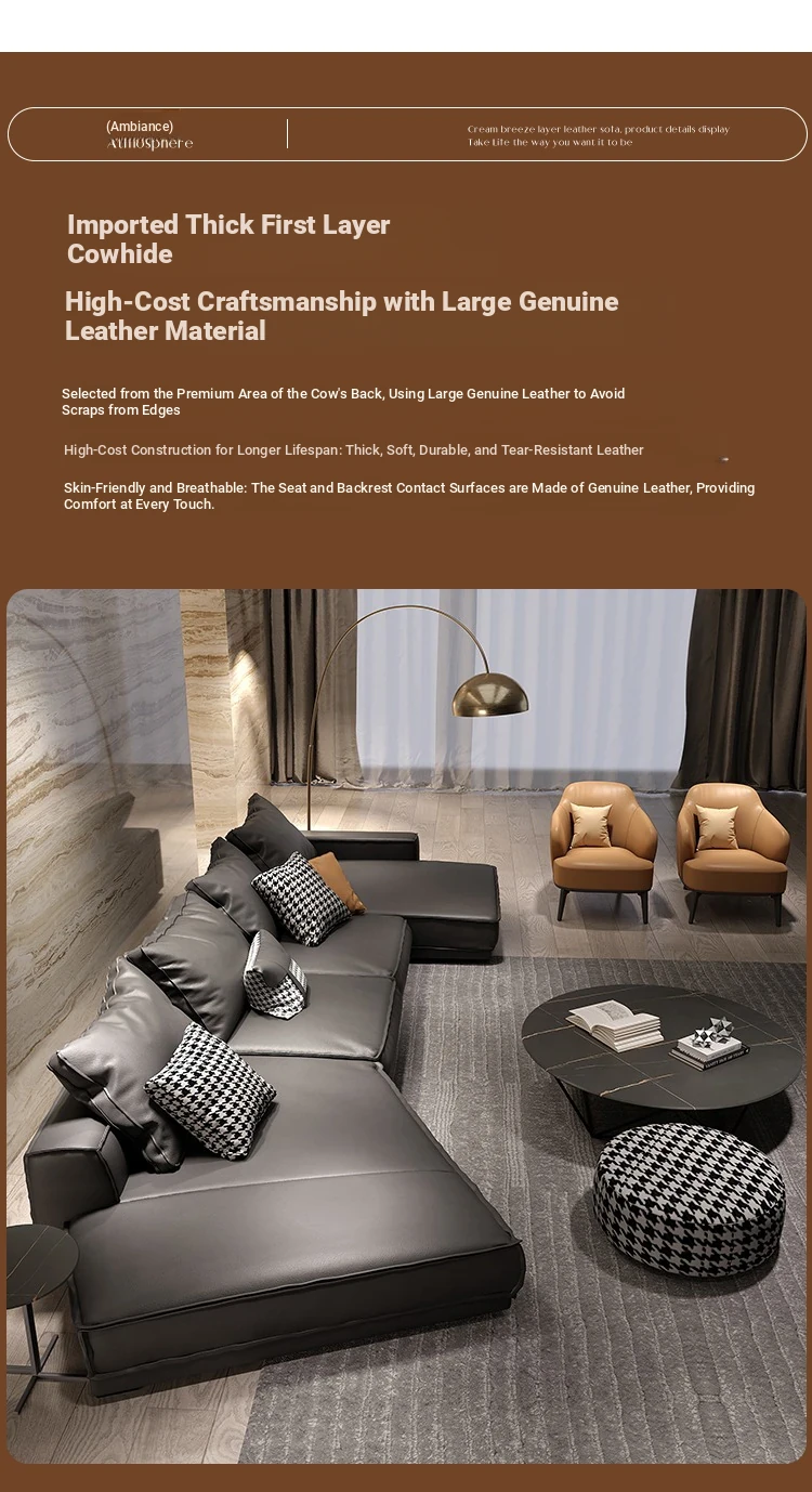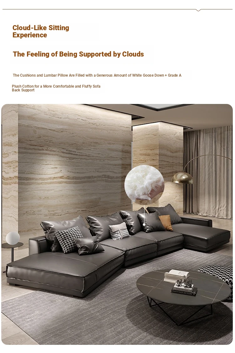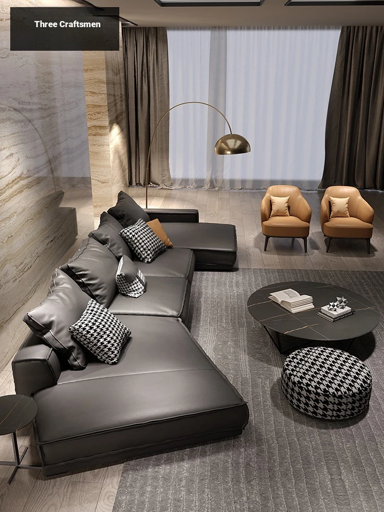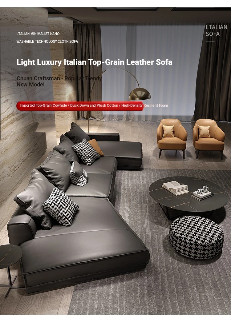 Baxter Budapest Modern Minimalist Leather Sofa Set - Luxurious and Stylish Chaise Lounge for Your Living Room