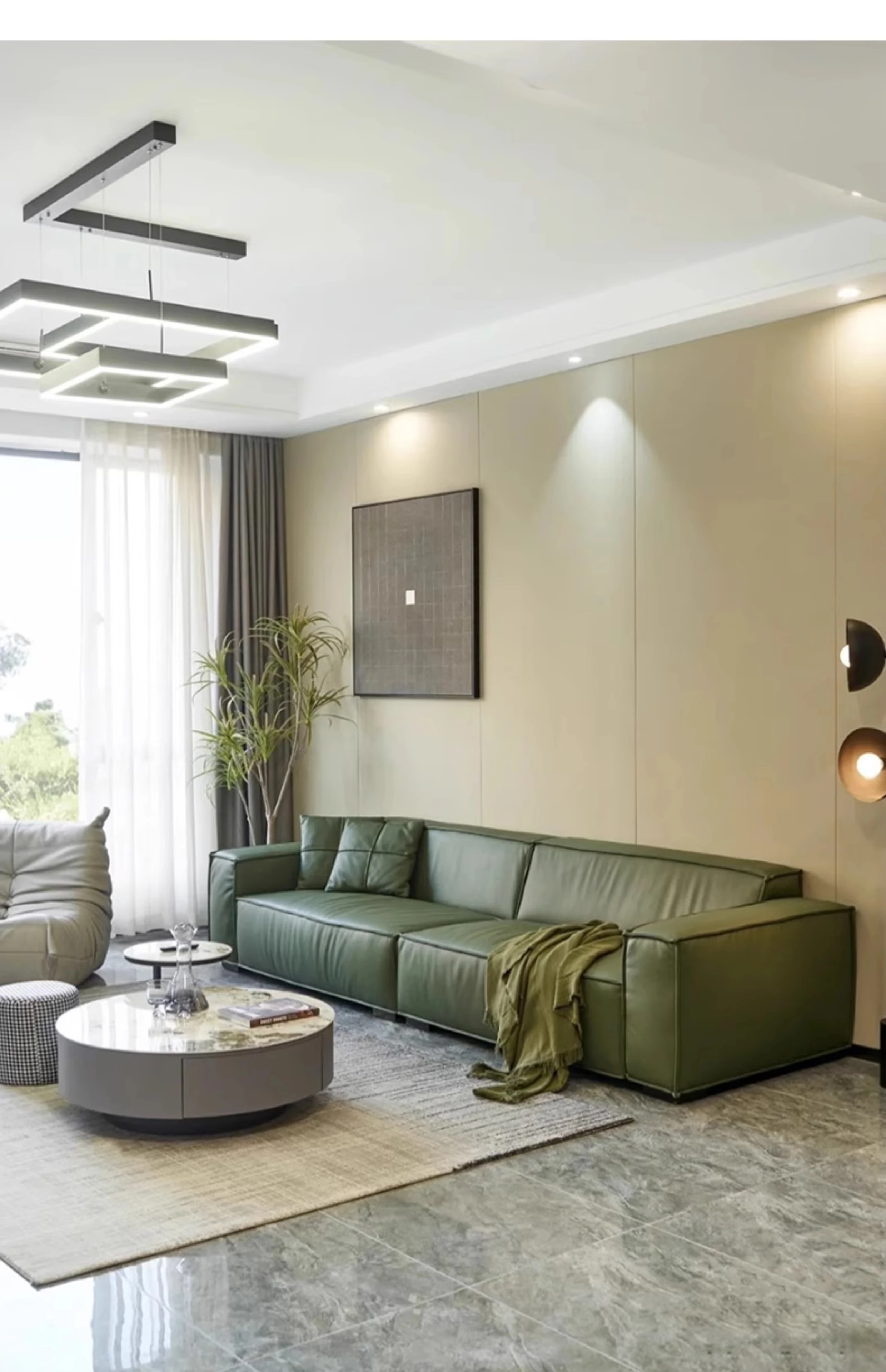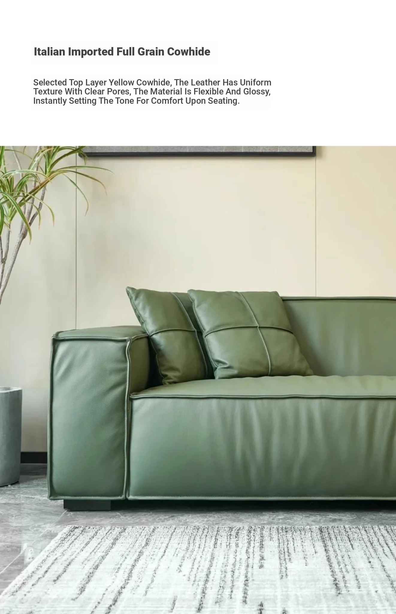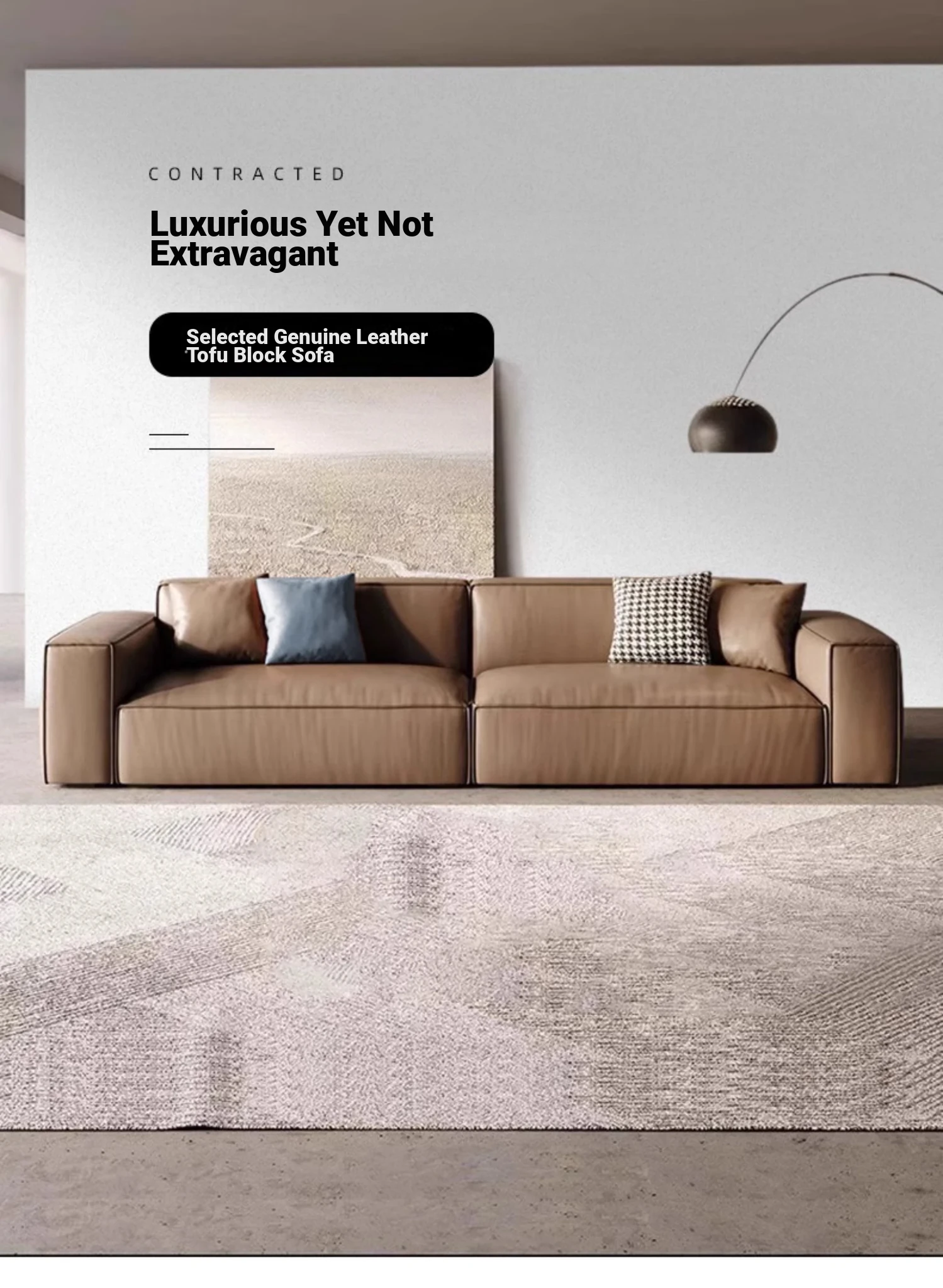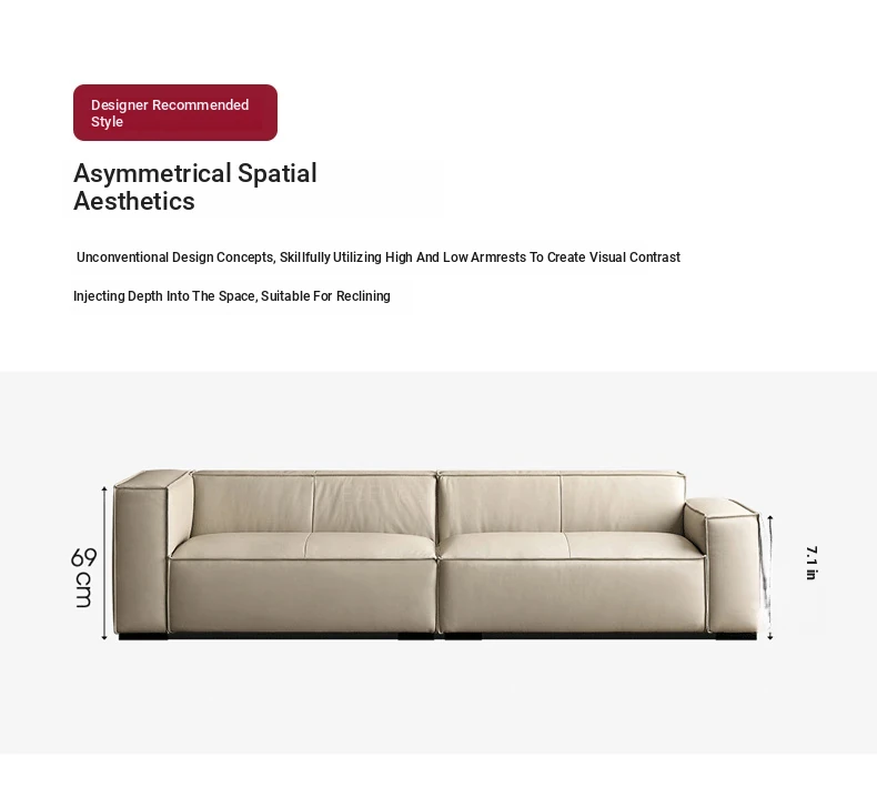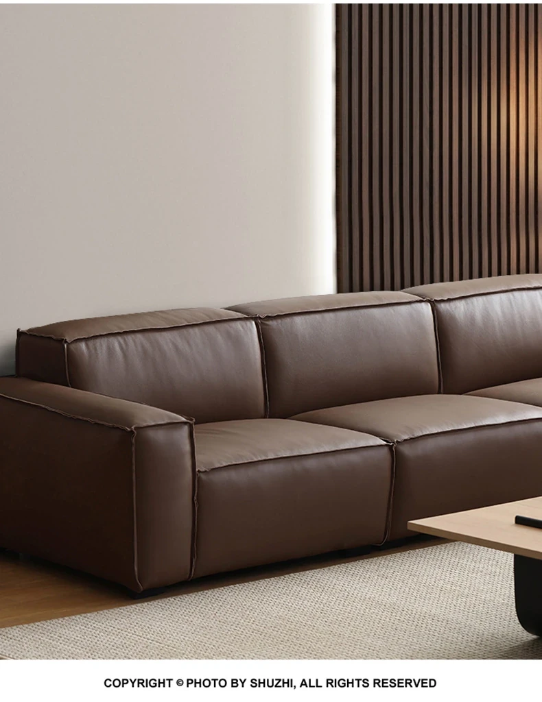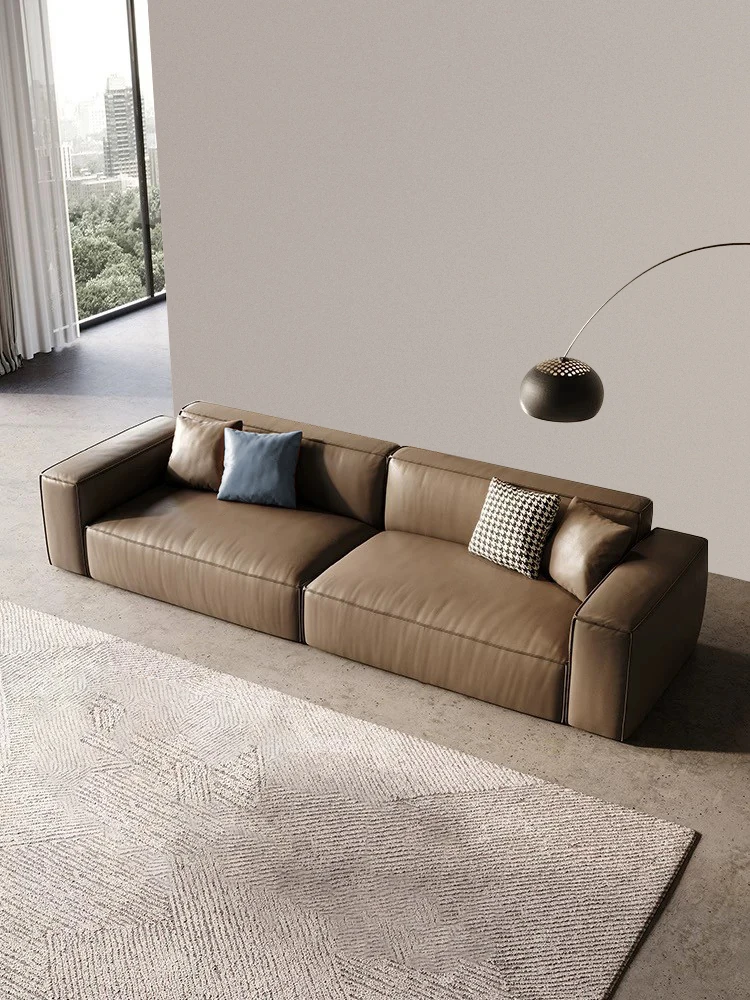 DEEVINCI Genuine Leather Tofu Block Sofa - Italian Modern Minimalist 3-Seater, Sleek and Stylish Design for Contemporary Living Spaces