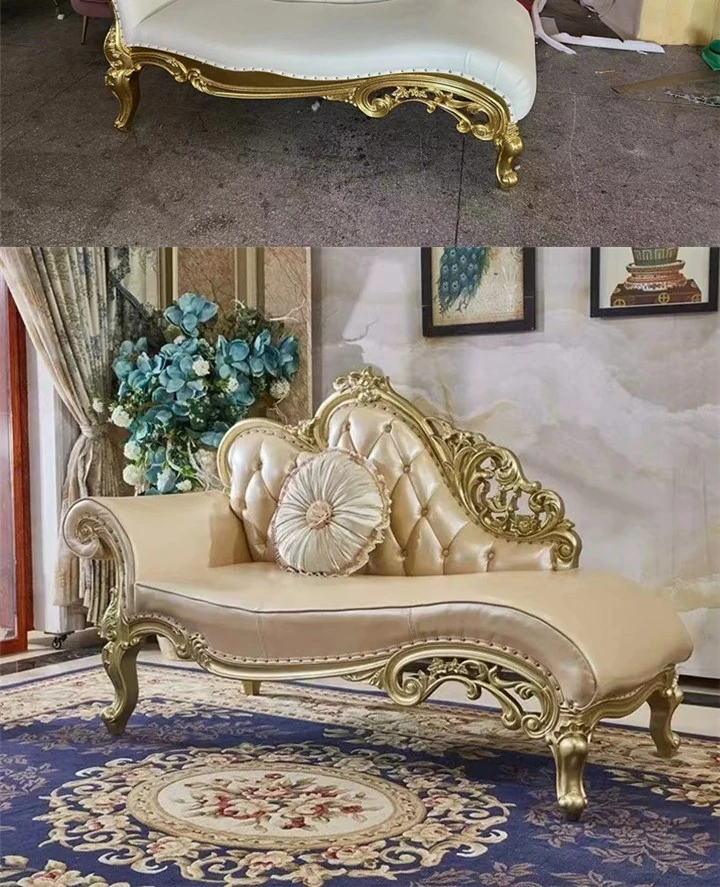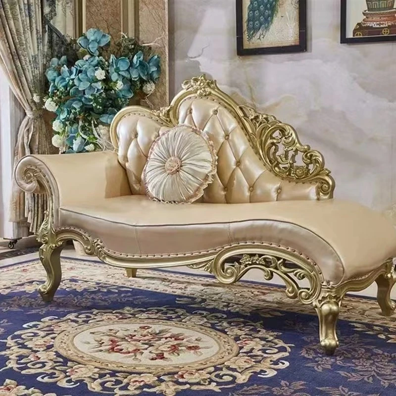 "Elegant Solid Wood Carved Princess Chaise Lounge for Small Master Bedroom - Stylish Chinese American Design, Perfect for Single Seating and Relaxation"