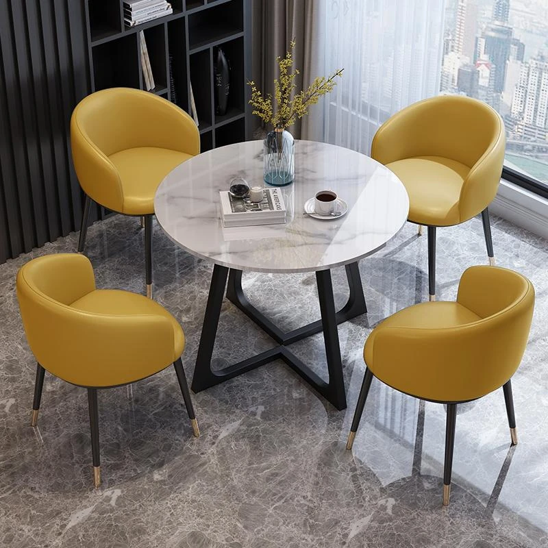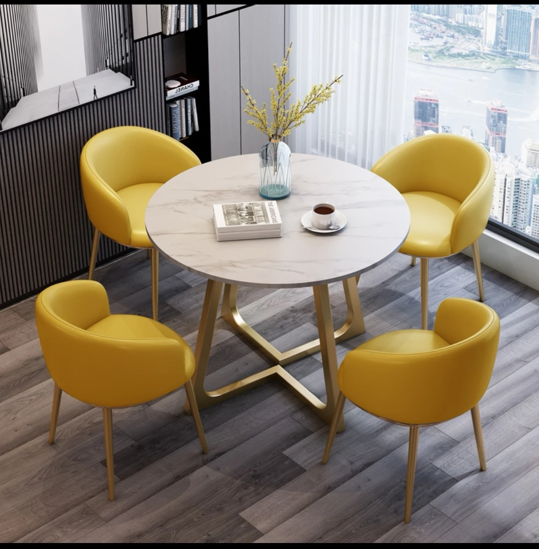 1 Table 4 chairs yellow (PU leather) Gold feet white matte rock plate