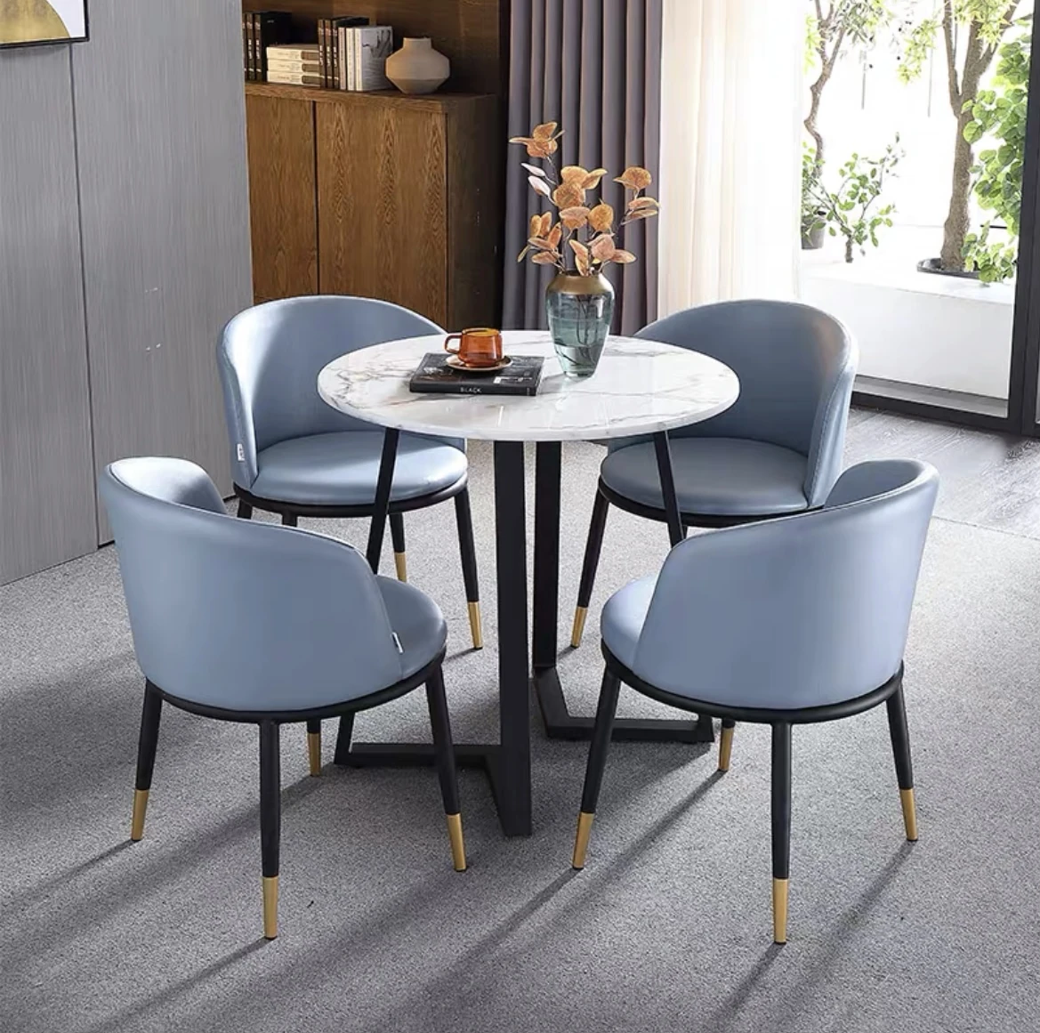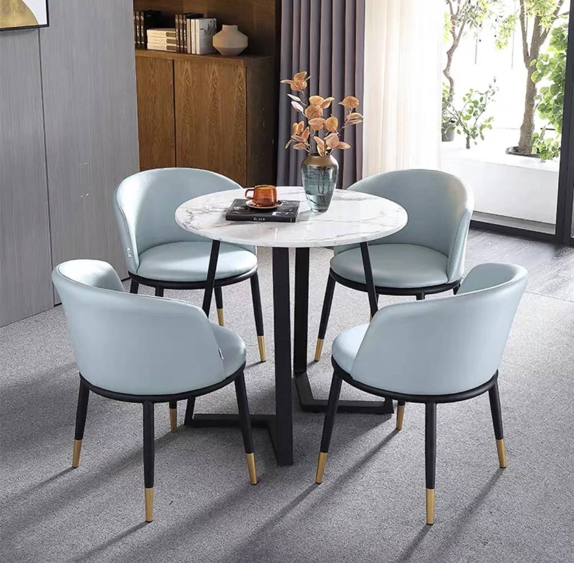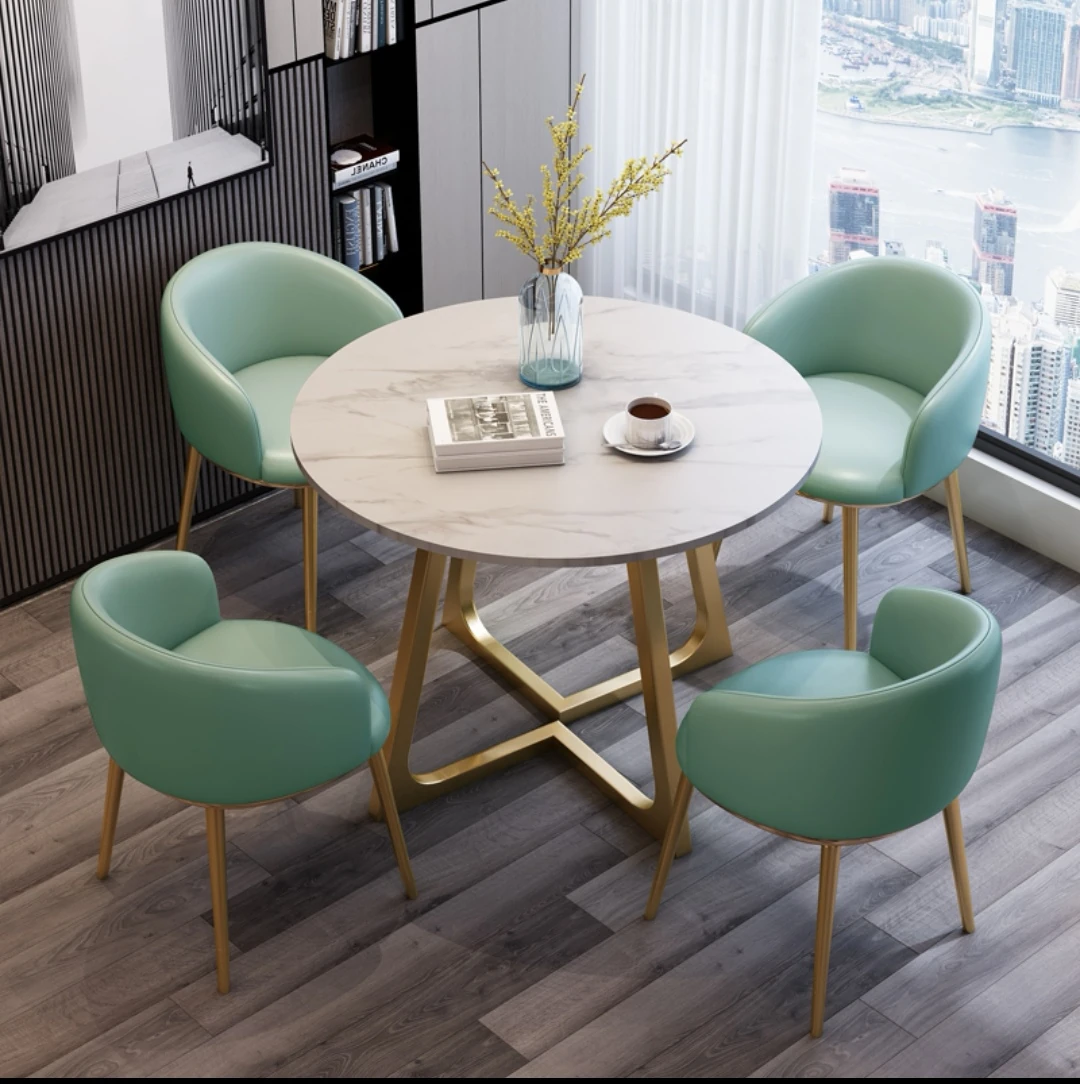 1 Table 4 chairs Tiffany Blue (PU leather) Gold feet white matte rock board