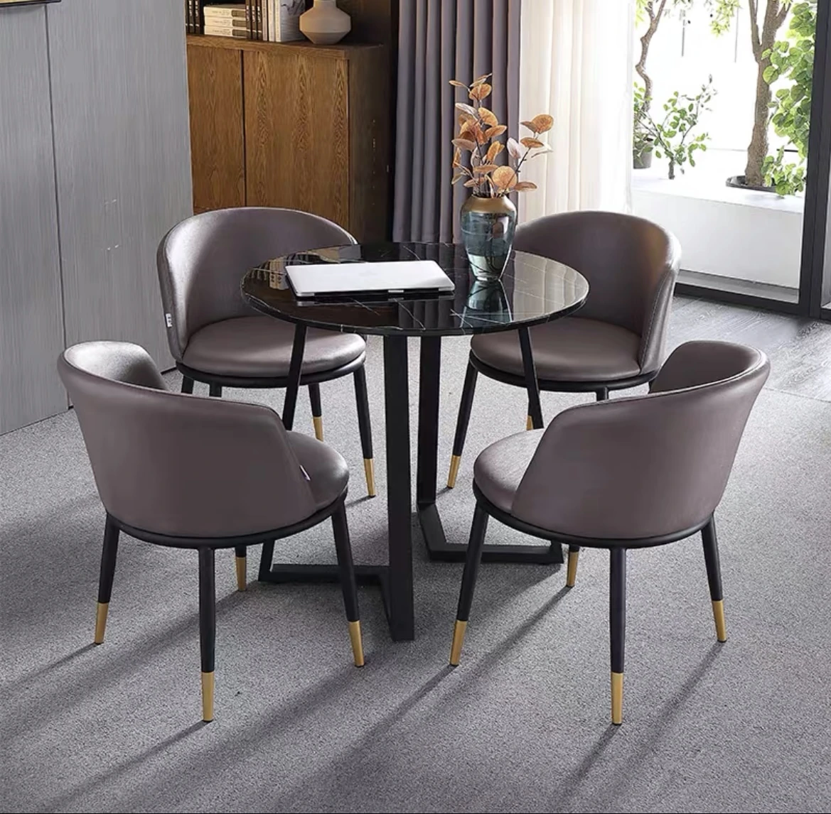 1 Table 4 chairs dark gray (PU leather) black feet black bright marble