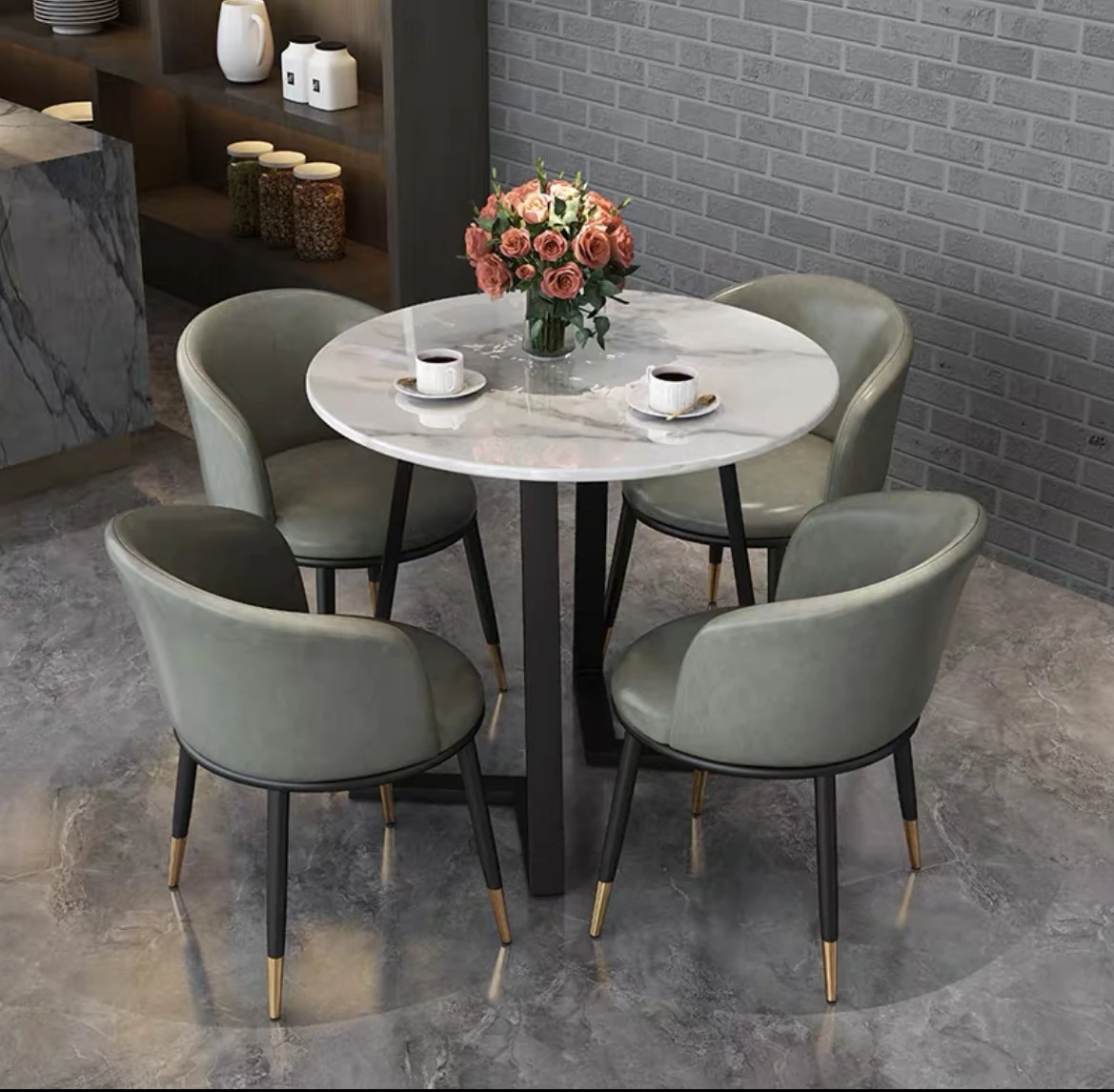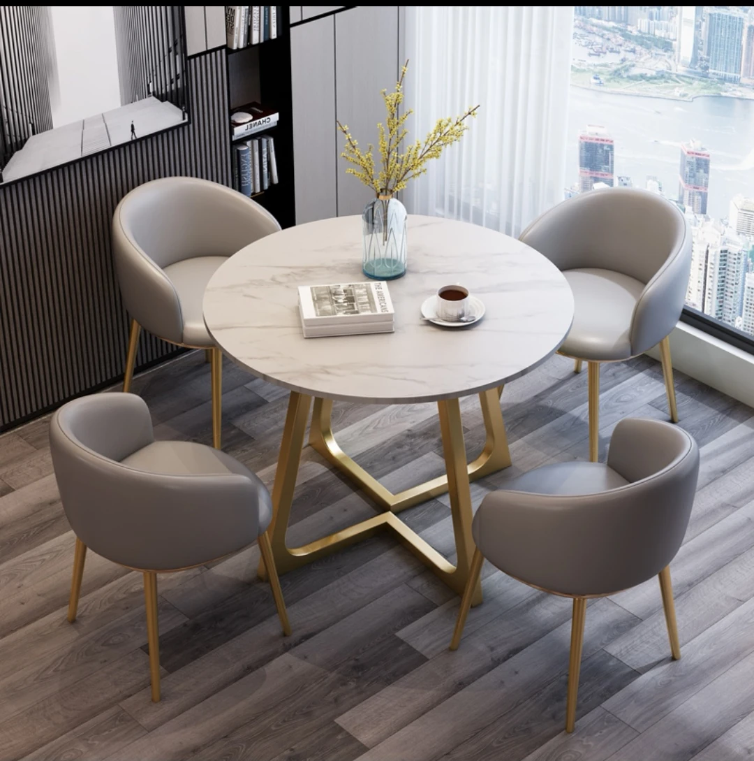 1 Table 4 chairs khaki (PU leather) Gold feet white matte rock plate