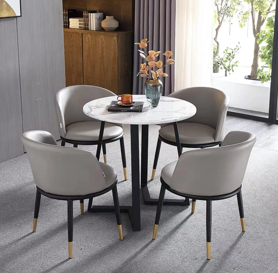 1 Table 4 chairs Gray (PU leather) Gold feet white matte rock plate