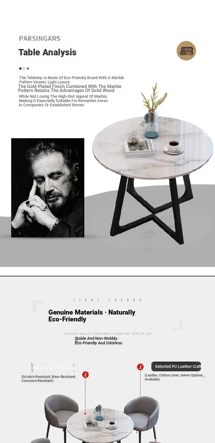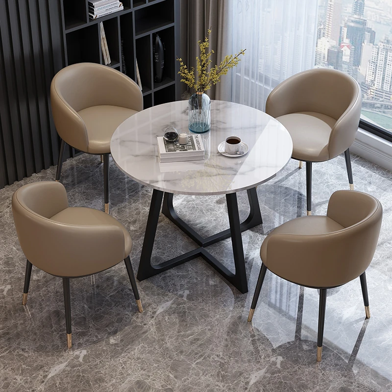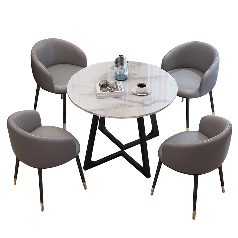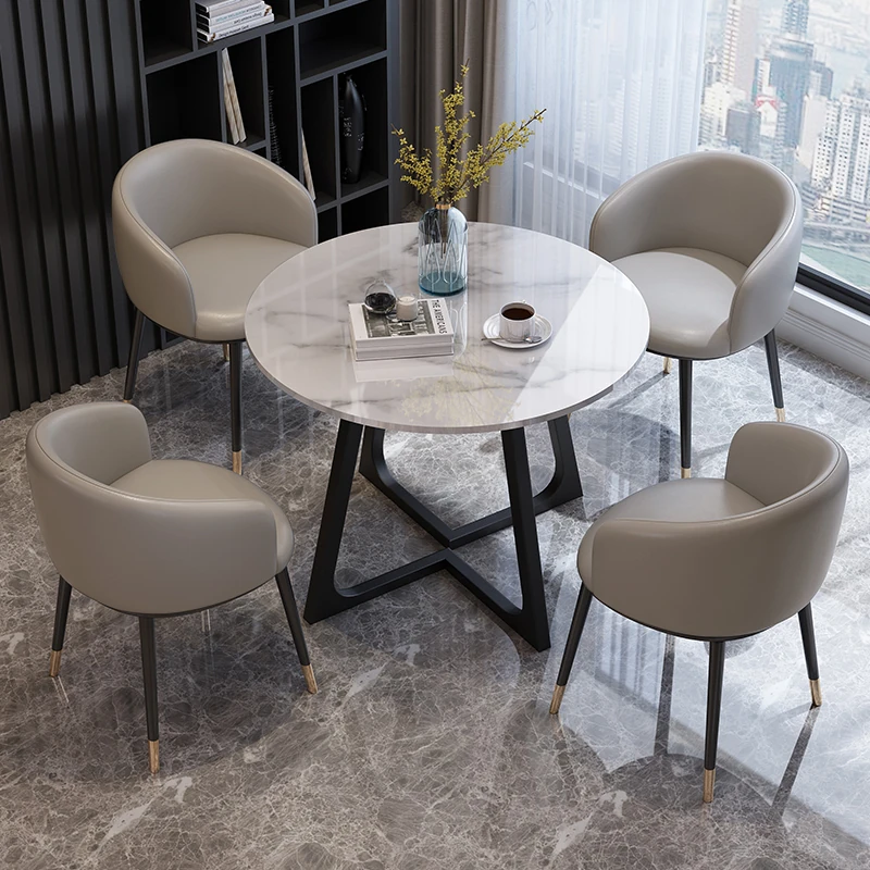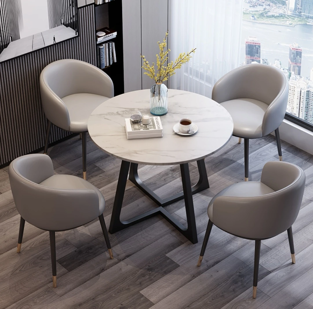 【Free Shipping in Hong Kong】Elegant Marble Small Round Table and Chair Set for Reception and Meeting Areas – Perfect for Showrooms and Commercial Offices