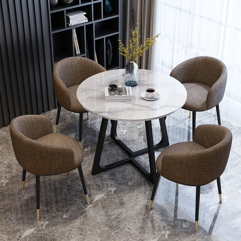 1 Table 4 black chair Brown (cotton and linen) imitation marble pattern