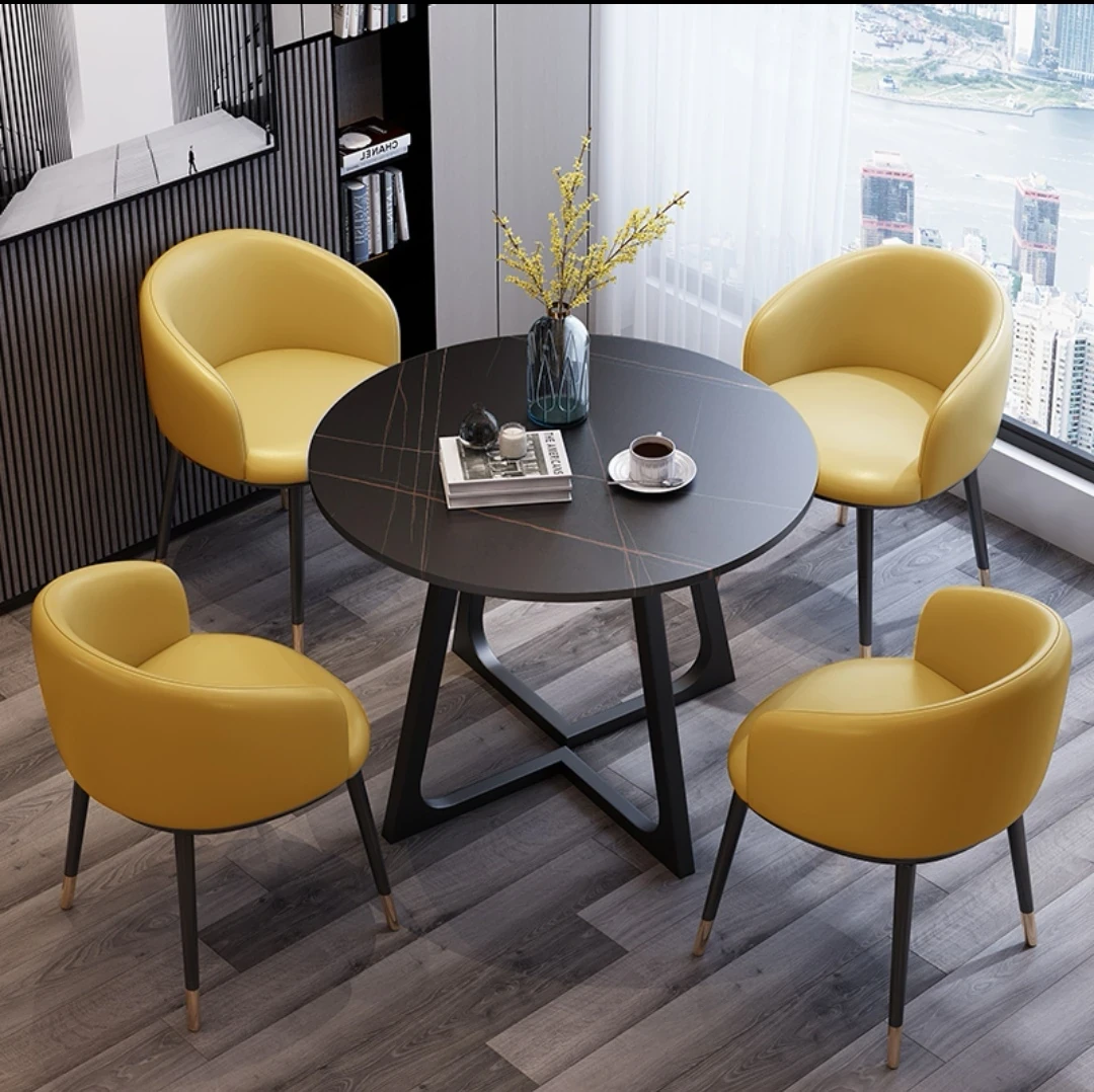 1 Table 4 chairs yellow (PU leather) black foot black matte rock plate