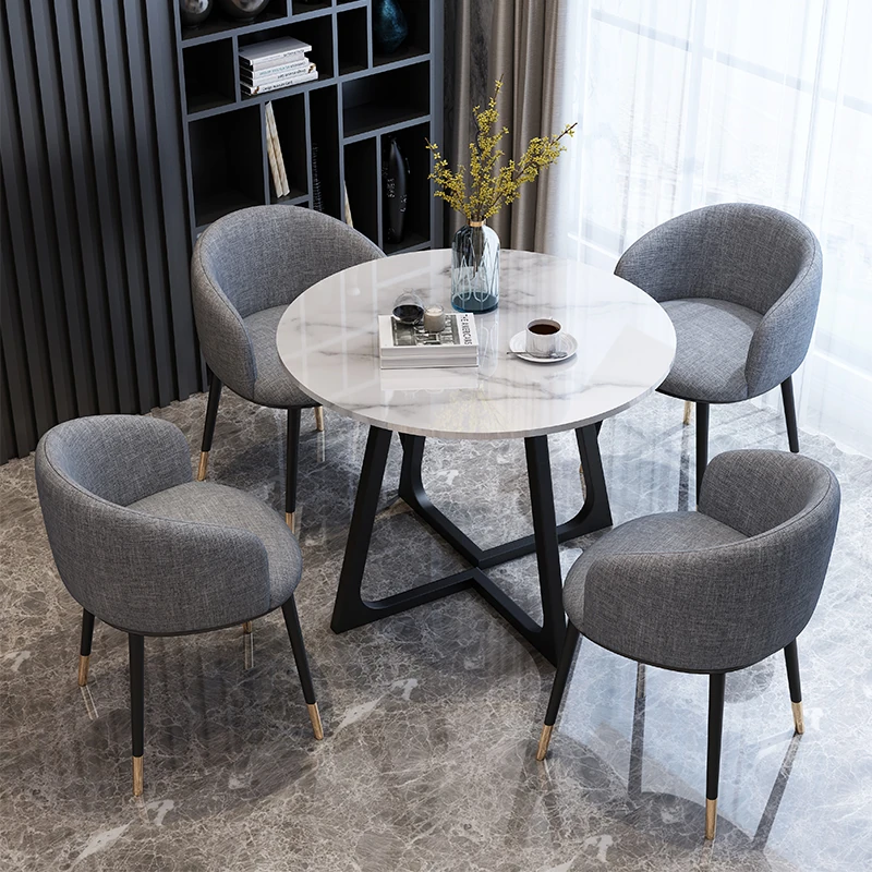 1 Table 4 black chair Gray (cotton and linen) imitation marble pattern
