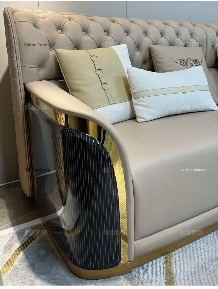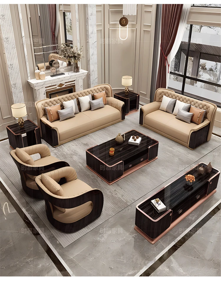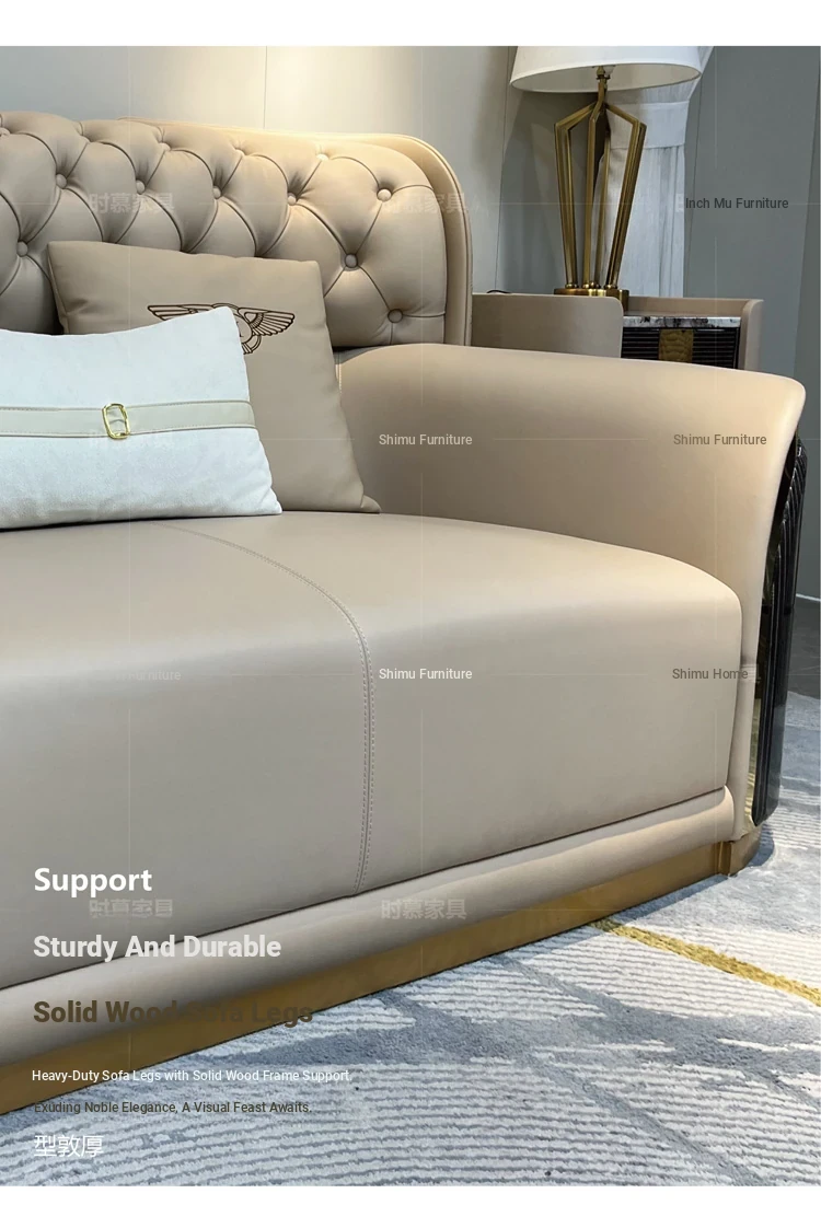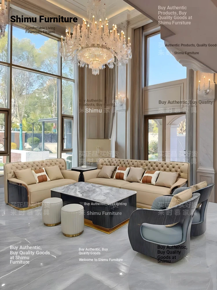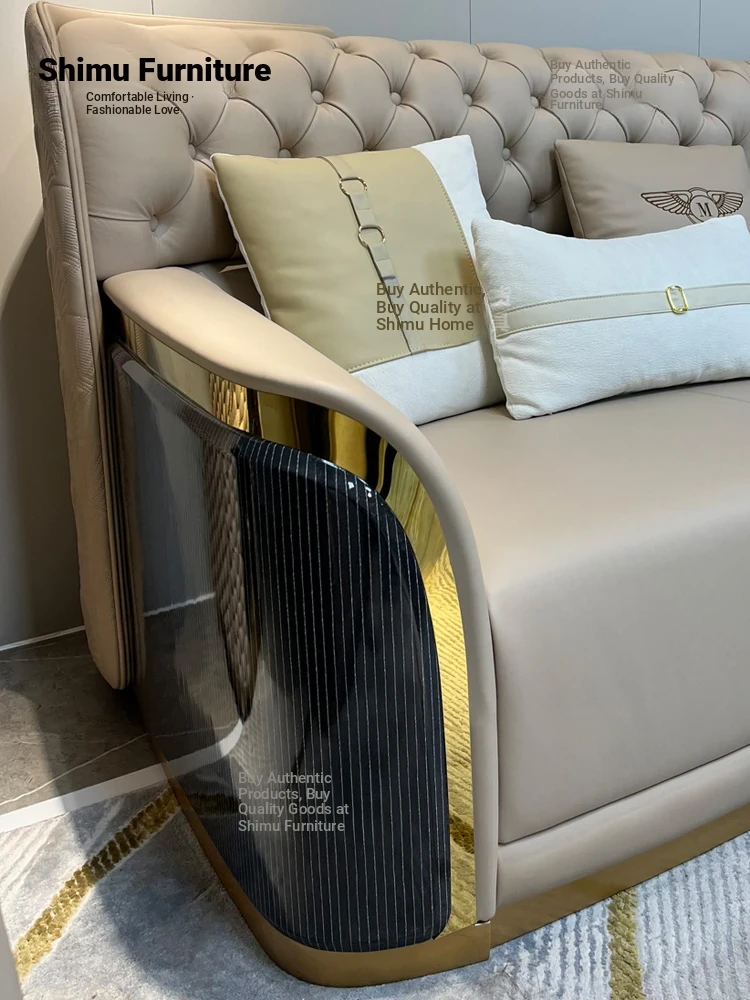 Italian Luxury Genuine Leather Sofa Set for Large Villas - Premium Top-Grain Cowhide, High Back Design, Elegant Bentley Style Living Room Furniture