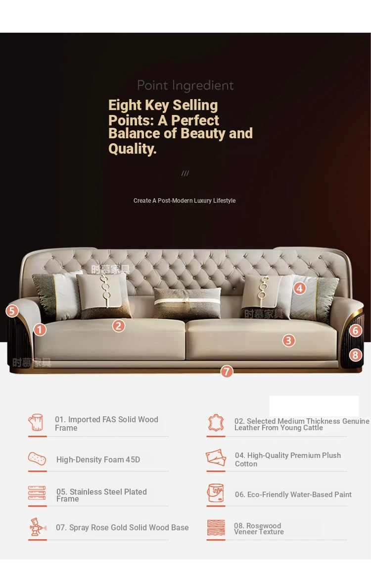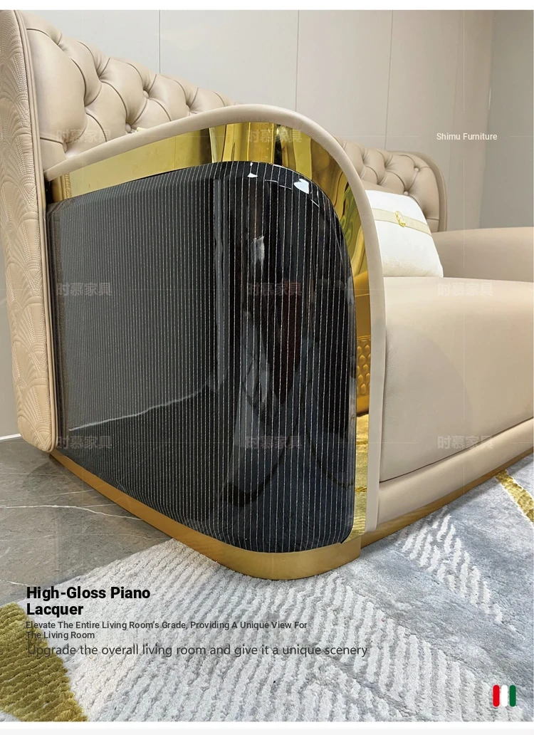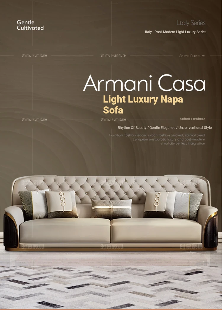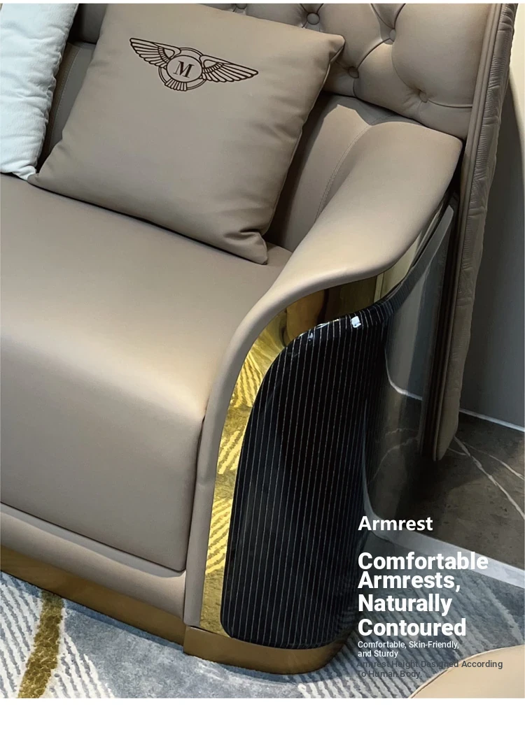 Italian Luxury Genuine Leather Sofa Set for Large Villas - Premium Top-Grain Cowhide, High Back Design, Elegant Bentley Style Living Room Furniture