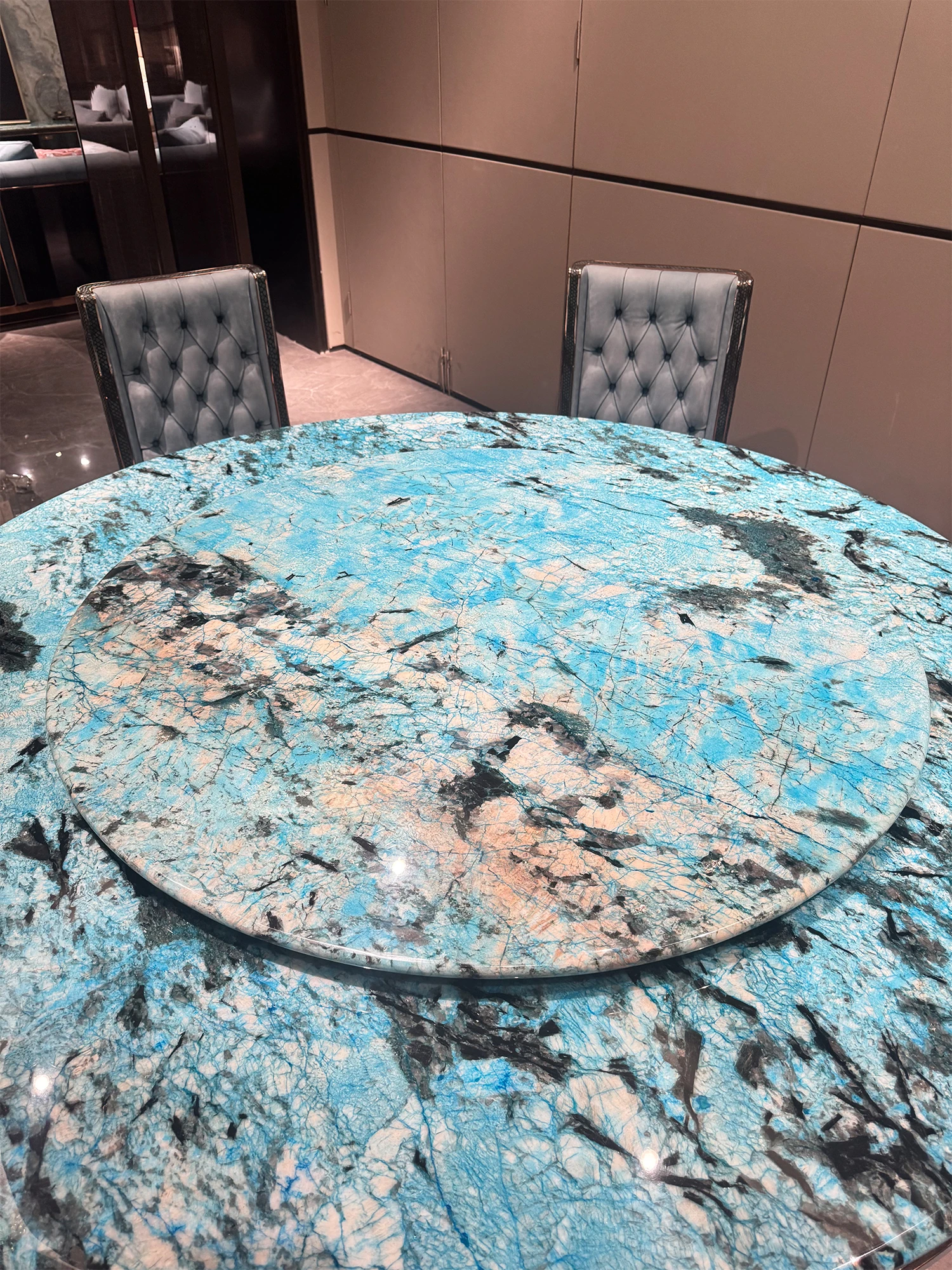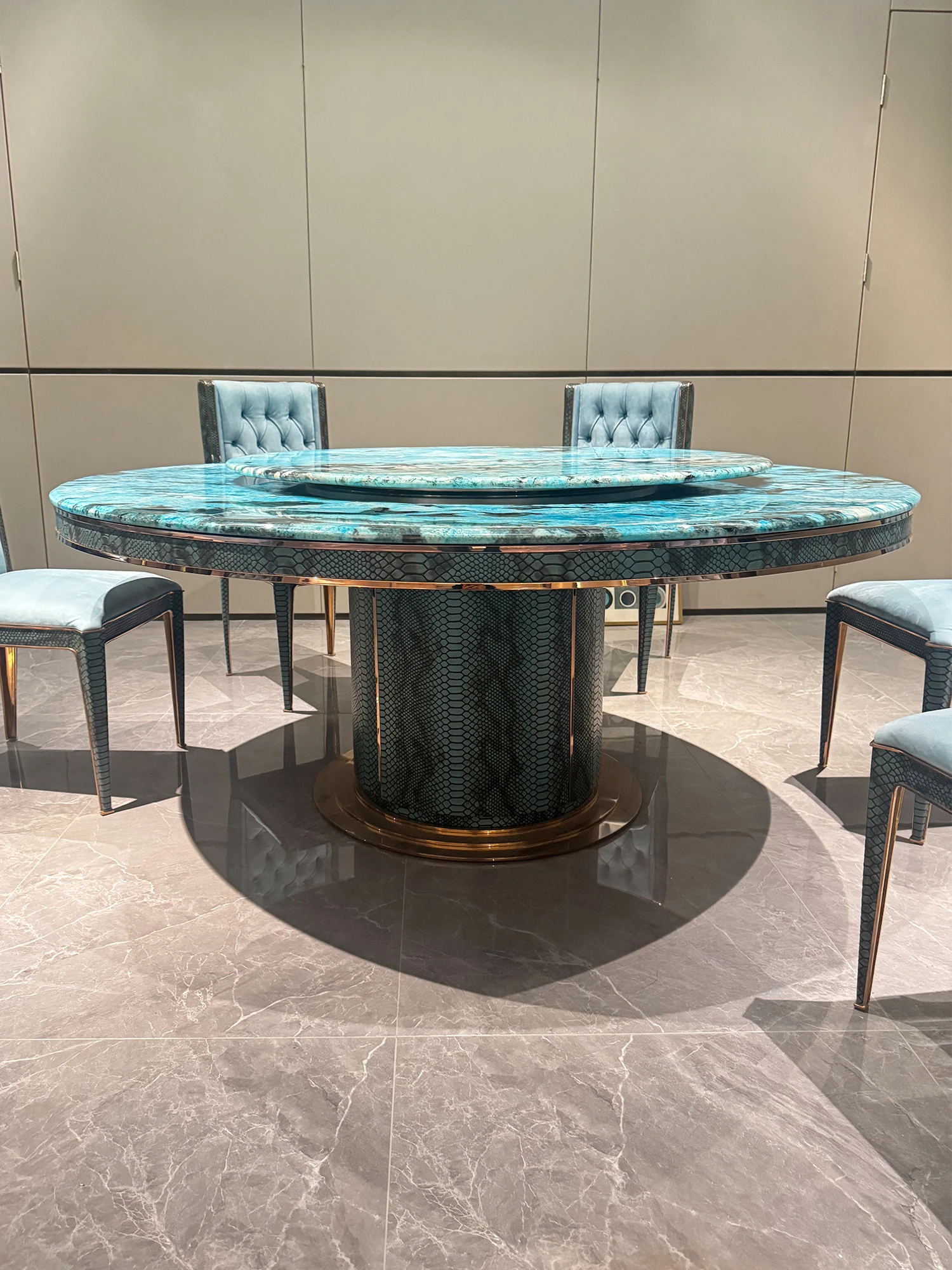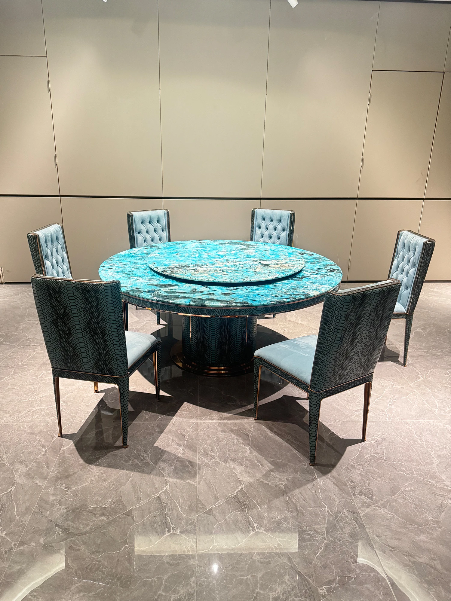 Italian Luxury Marble Round Dining Table Set - High-End Villa Natural Stone Round Table & Chair Combination for Elegant Living Spaces