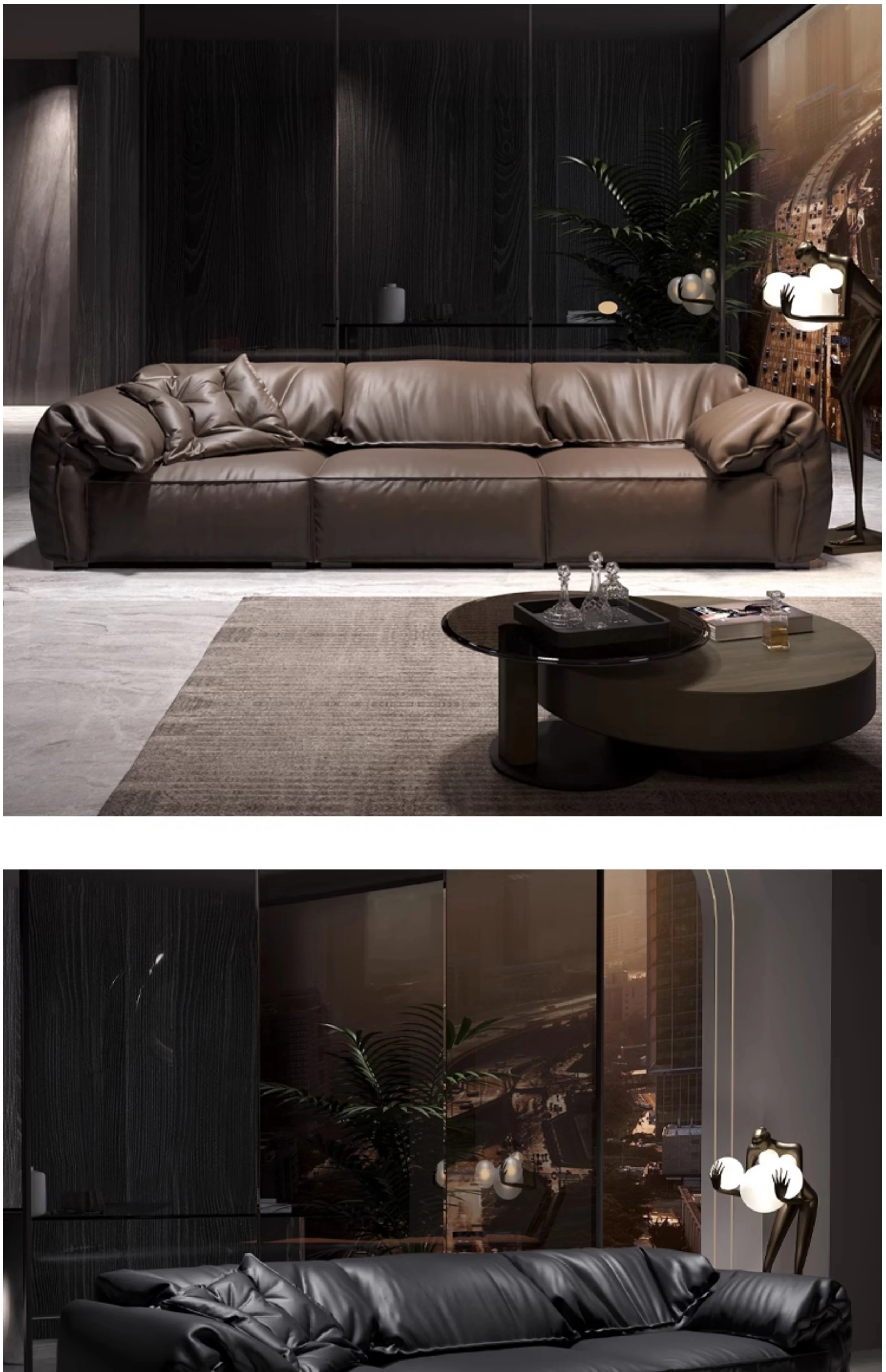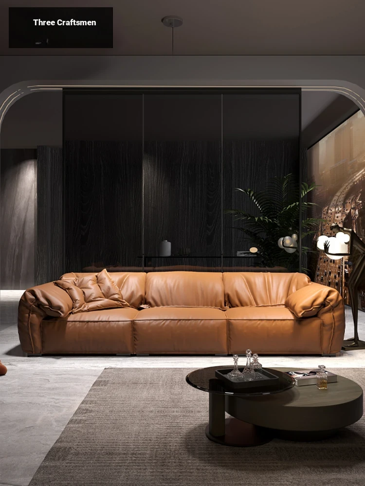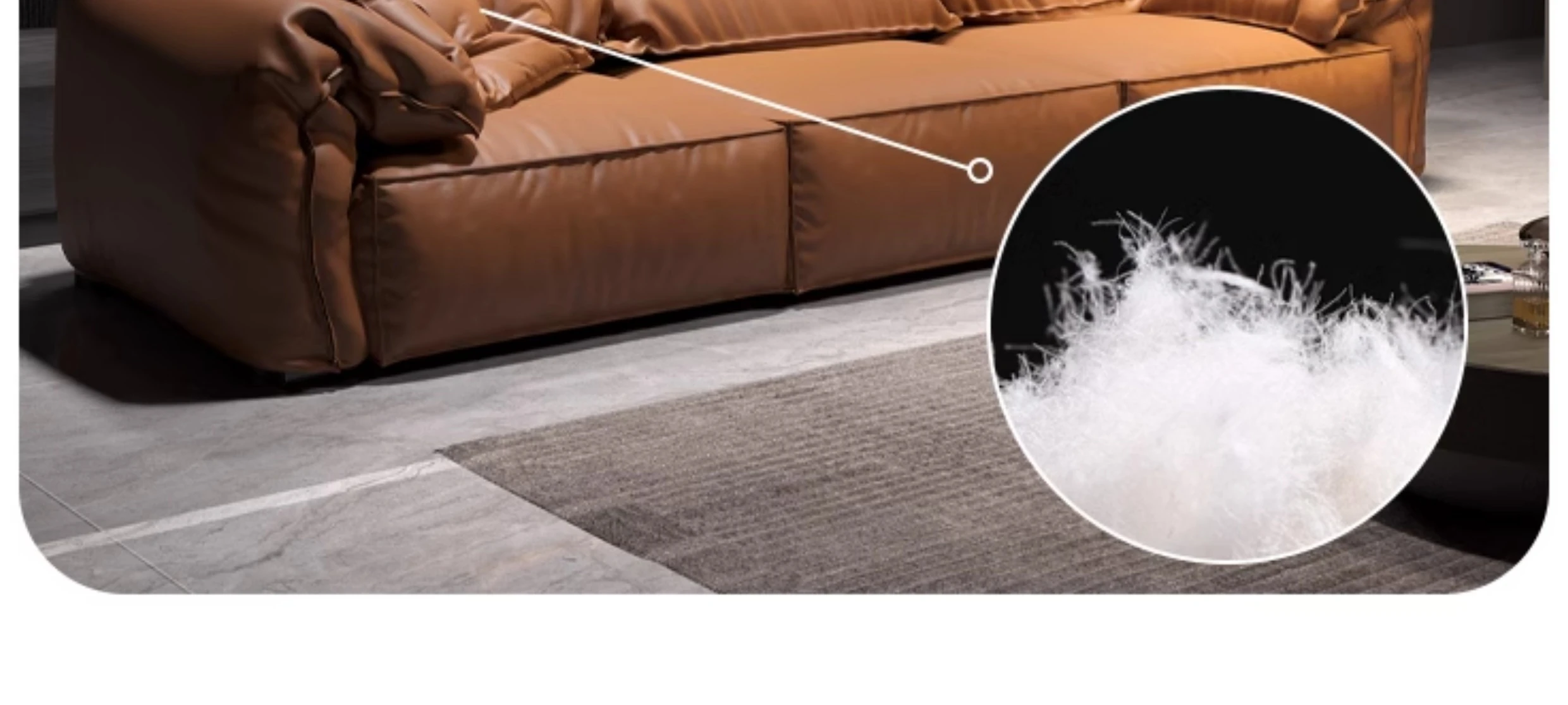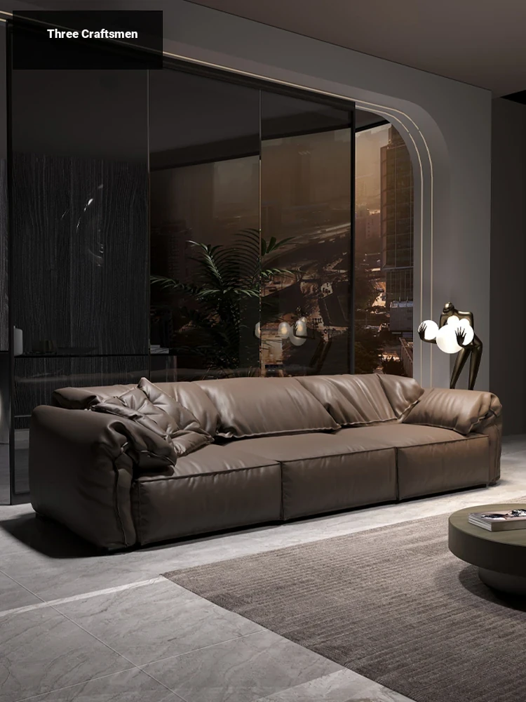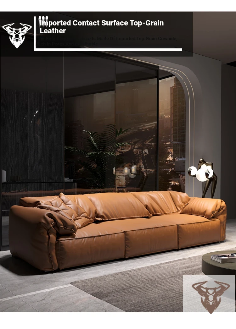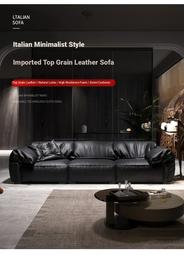 Italian Minimalist Designer Sofa with Genuine Leather and Elephant Ear Design - Perfect for Small Spaces, Luxurious Down Filling for Ultimate Comfort