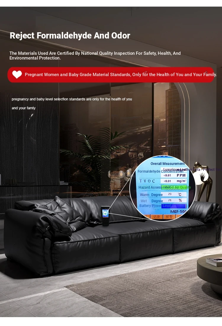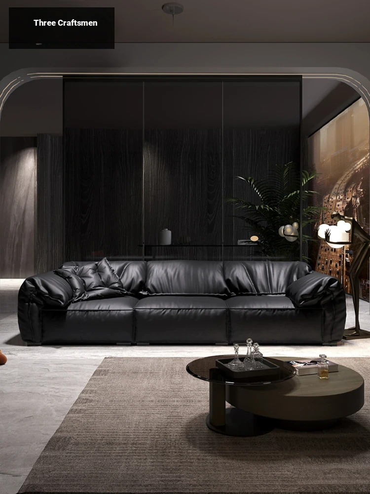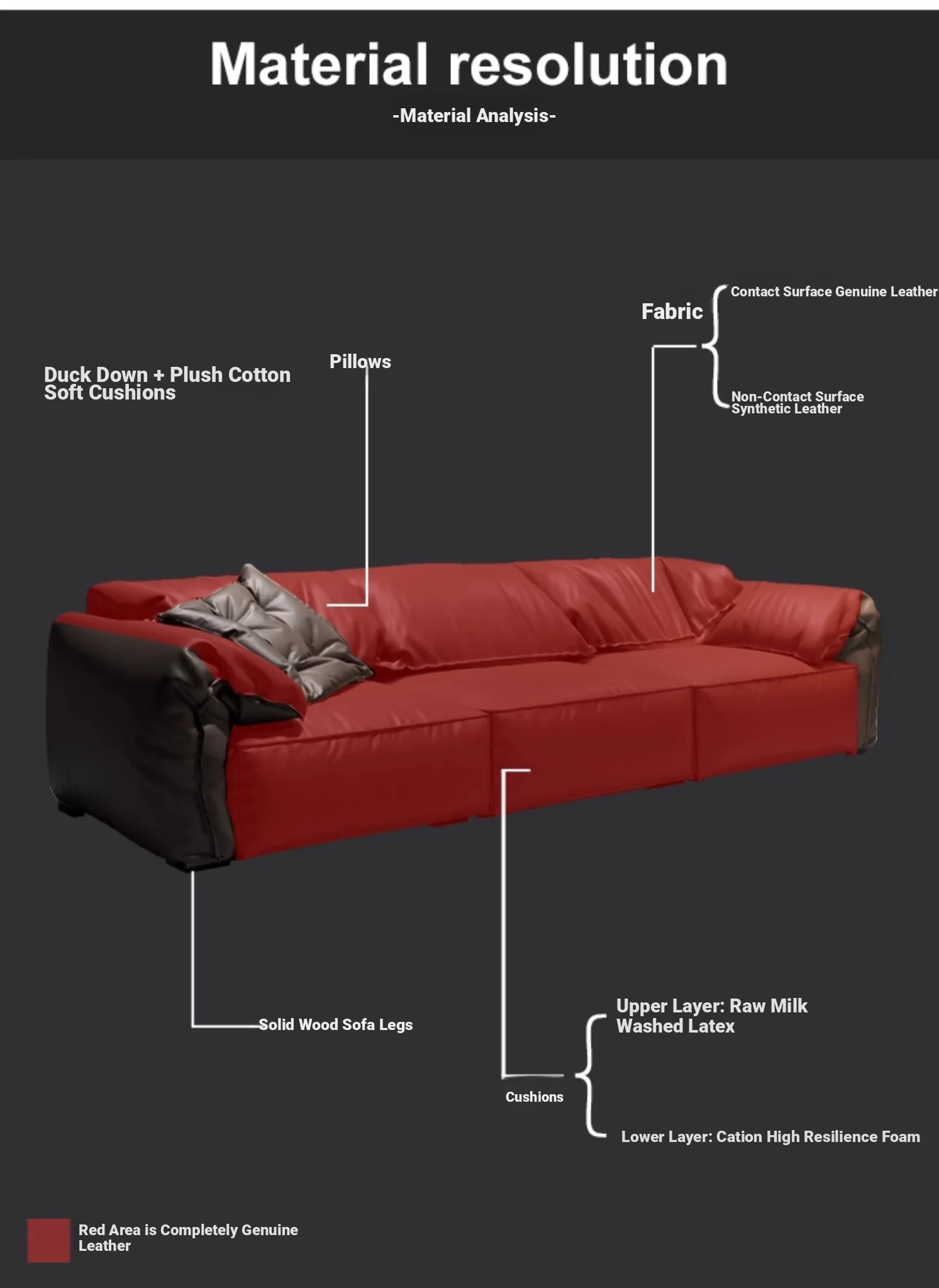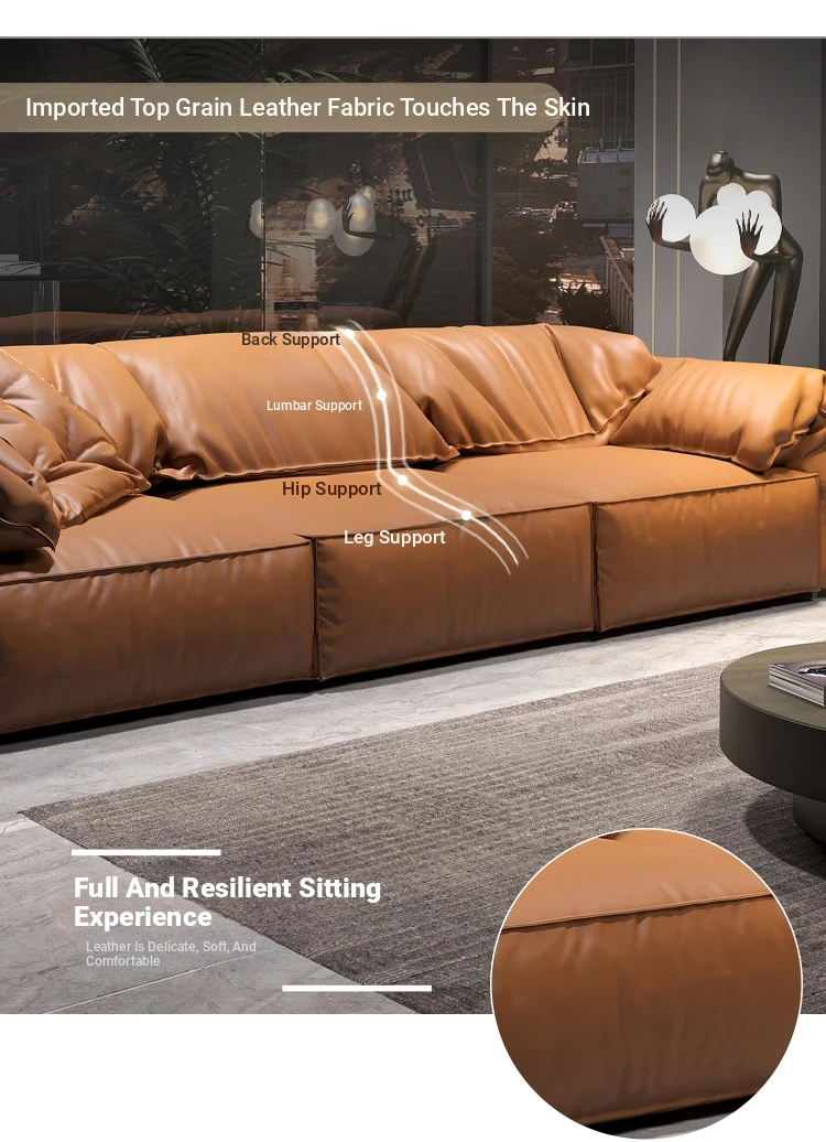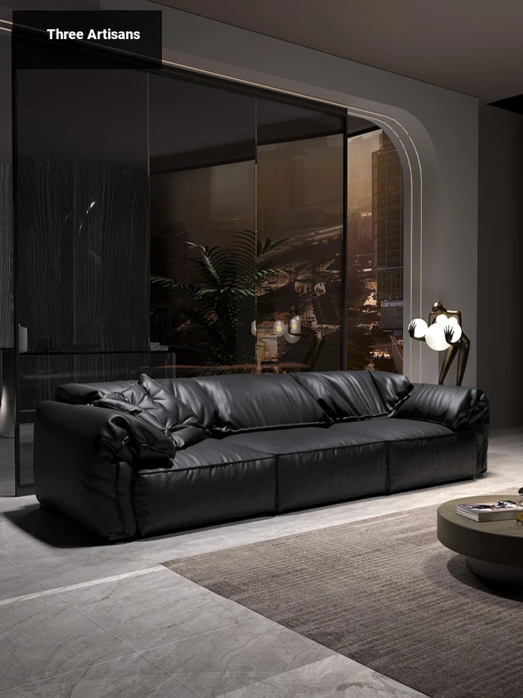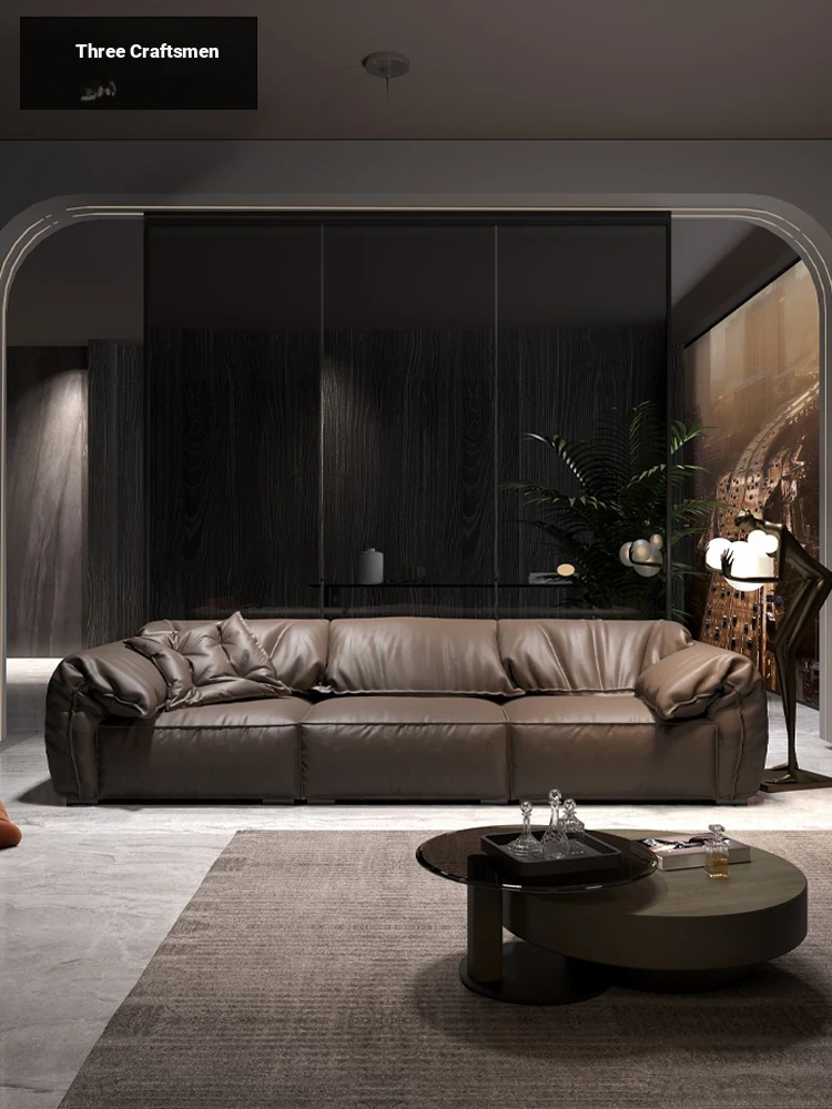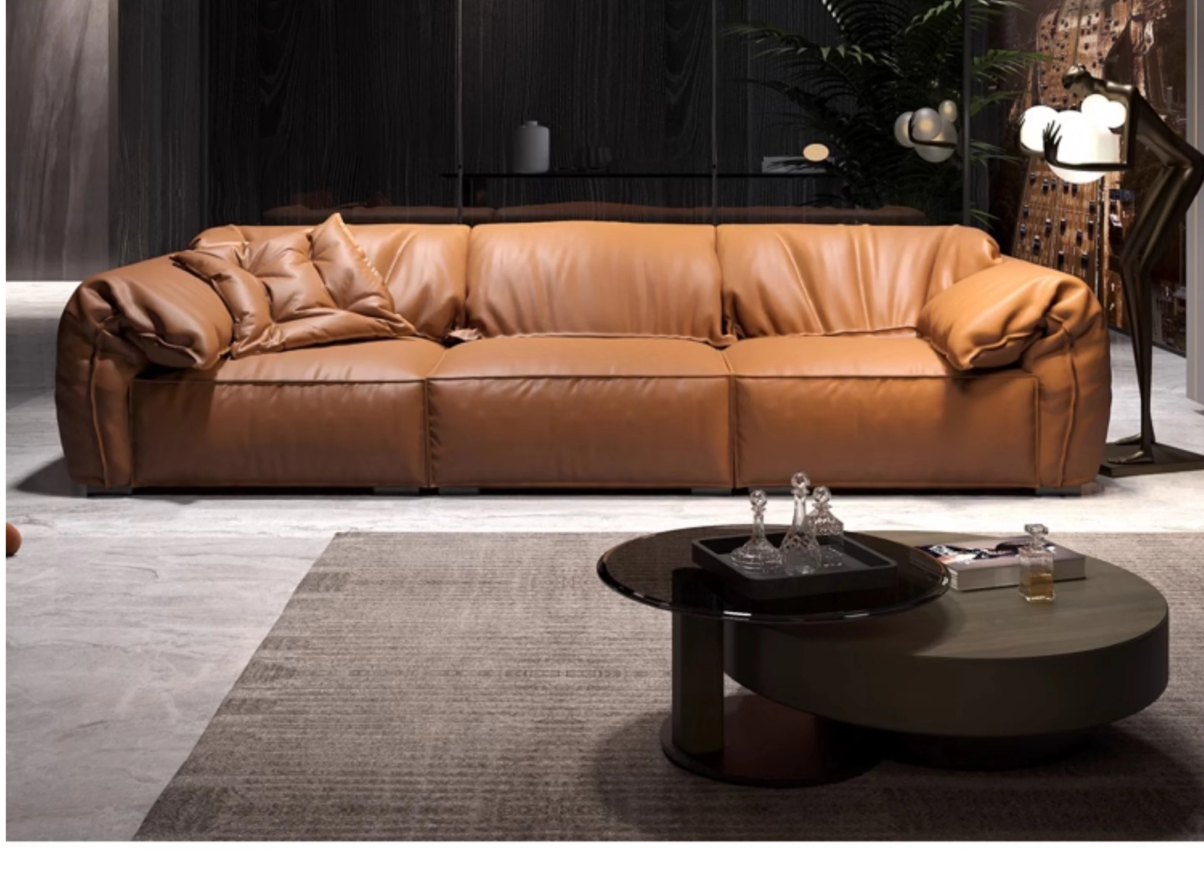 Italian Minimalist Designer Sofa with Genuine Leather and Elephant Ear Design - Perfect for Small Spaces, Luxurious Down Filling for Ultimate Comfort
