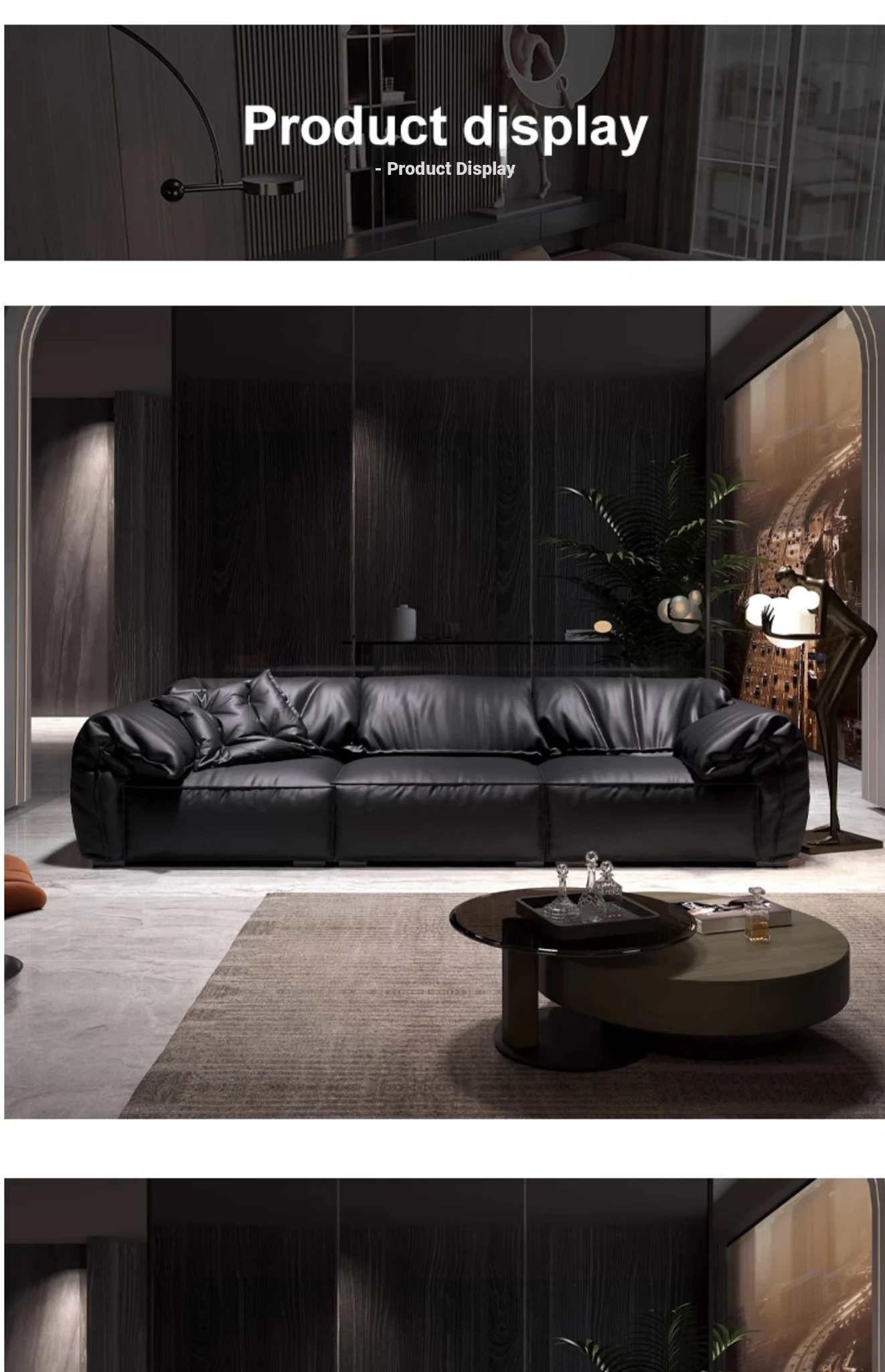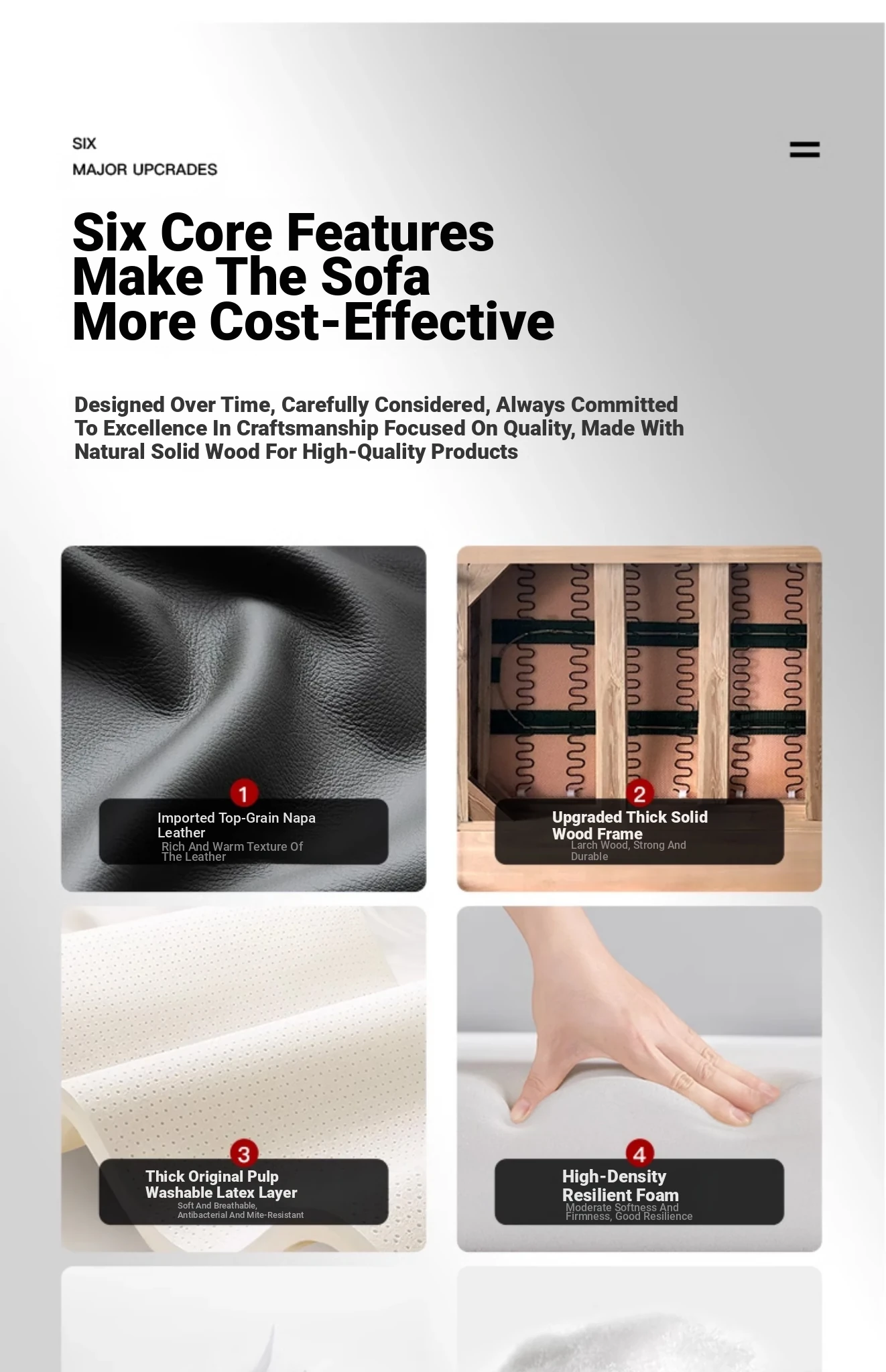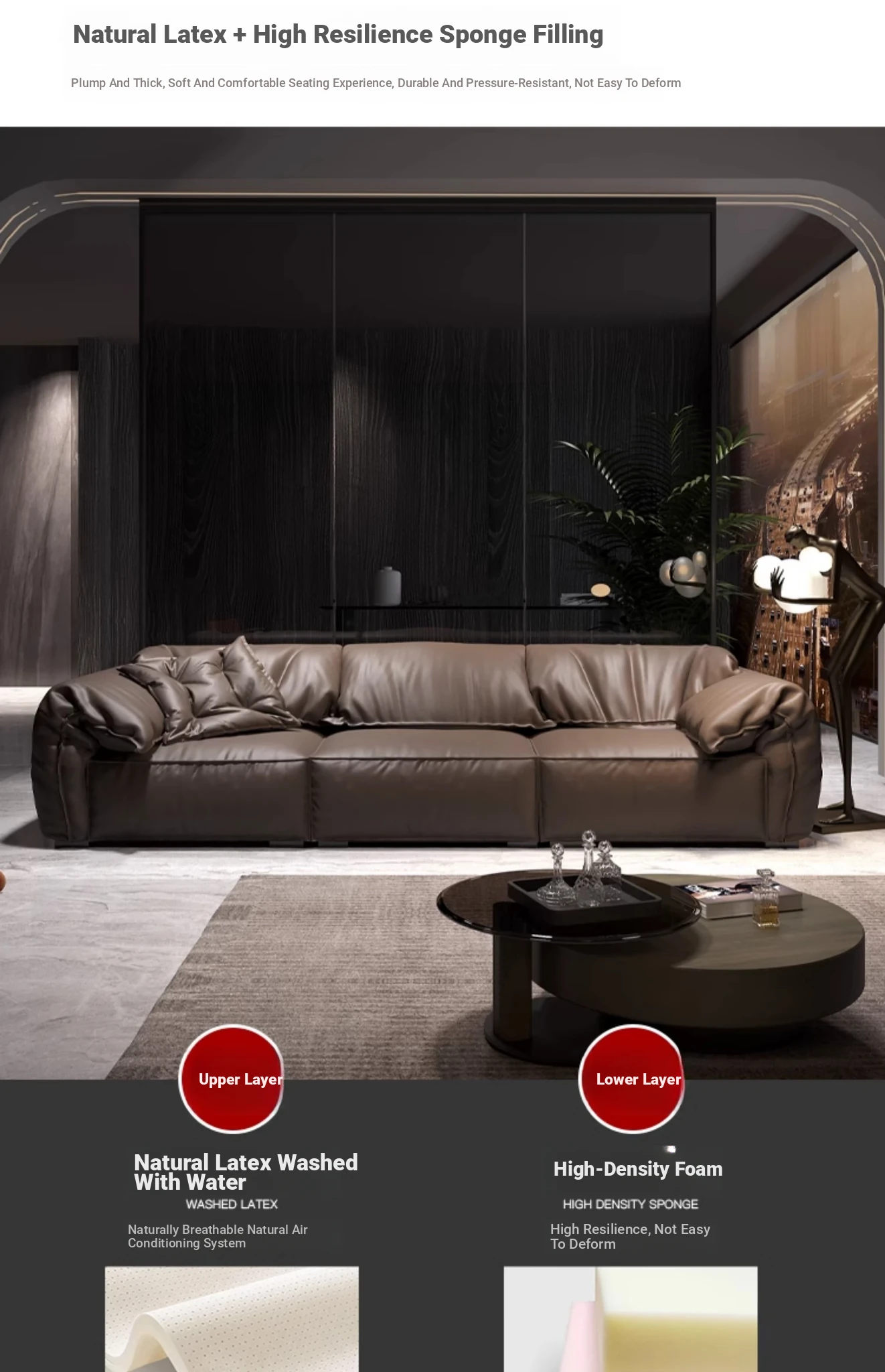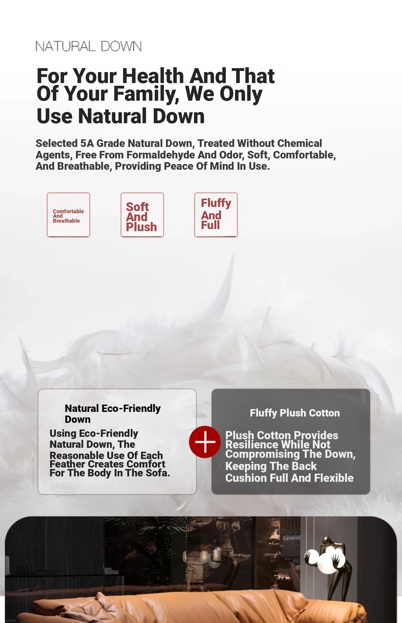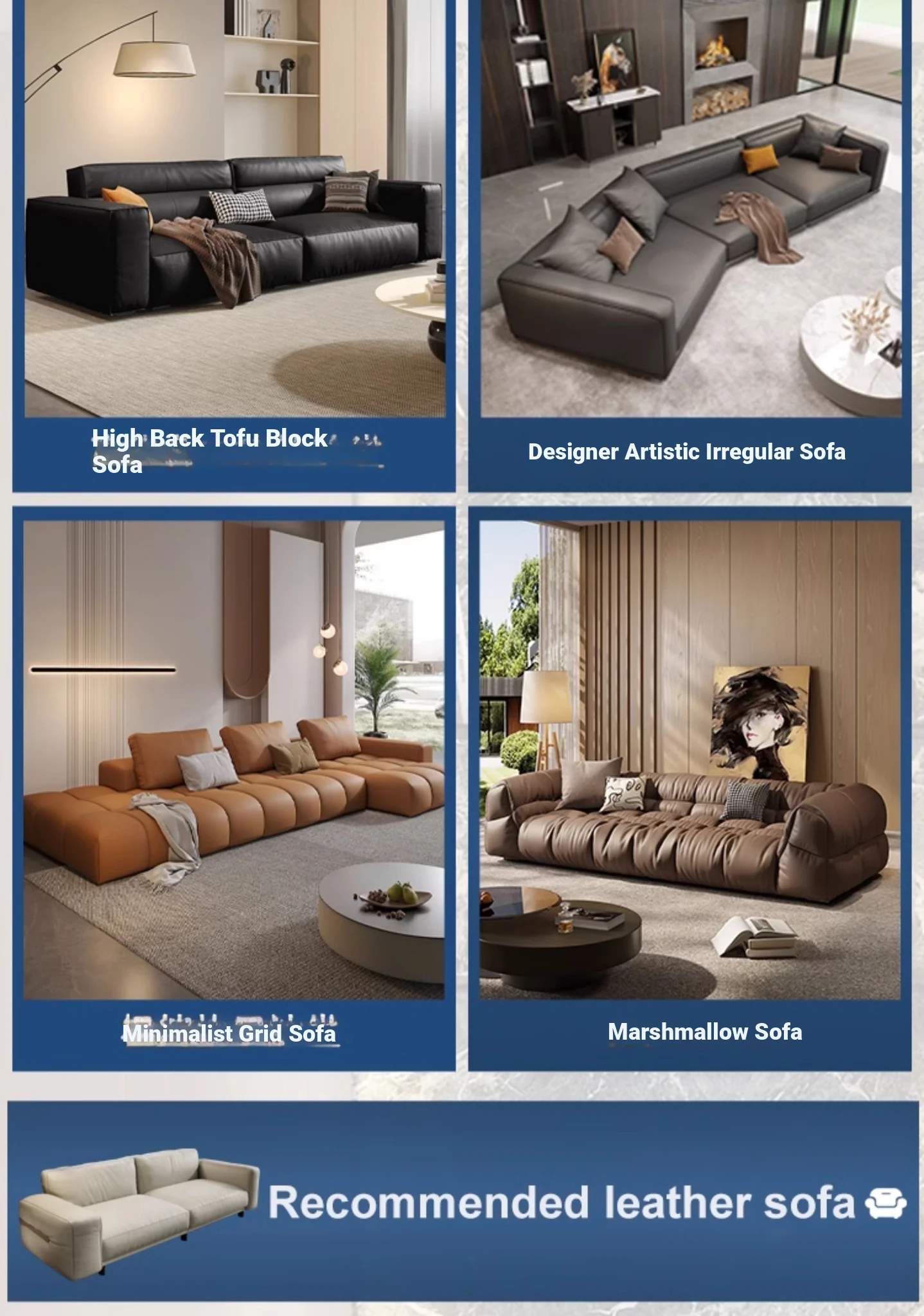 Italian Minimalist Designer Sofa with Genuine Leather and Elephant Ear Design - Perfect for Small Spaces, Luxurious Down Filling for Ultimate Comfort
