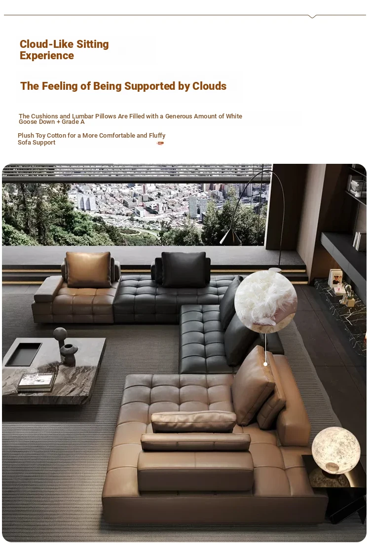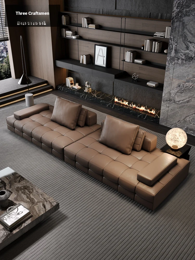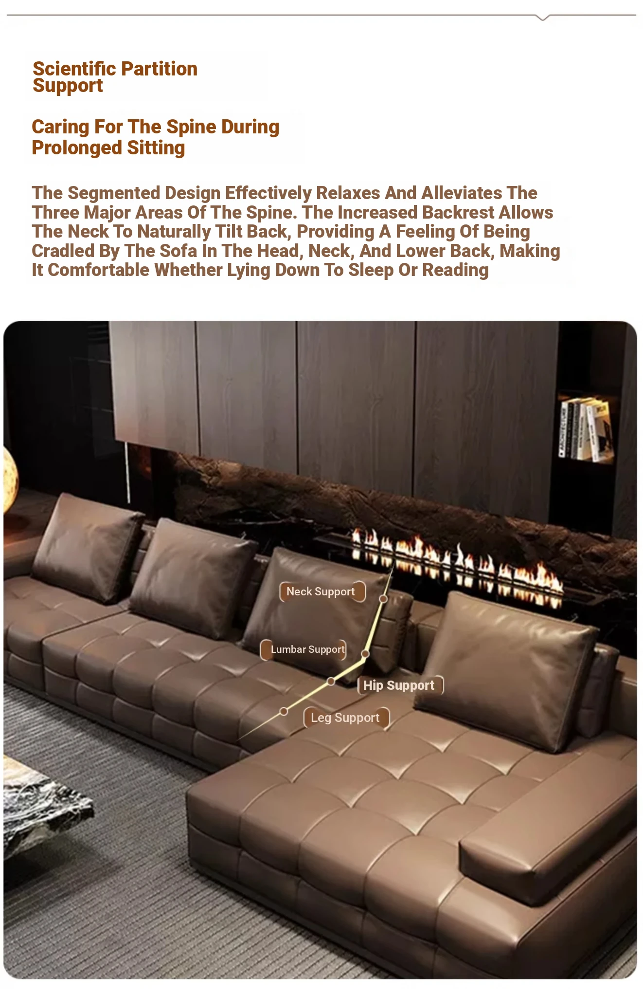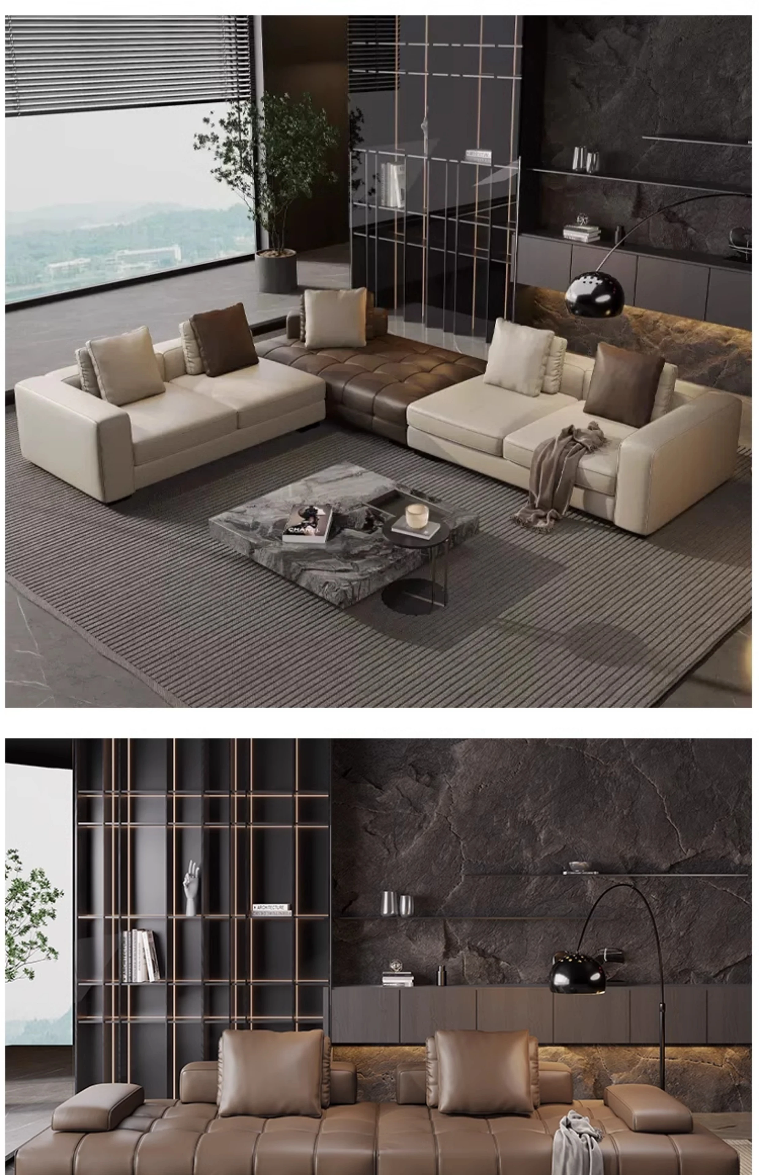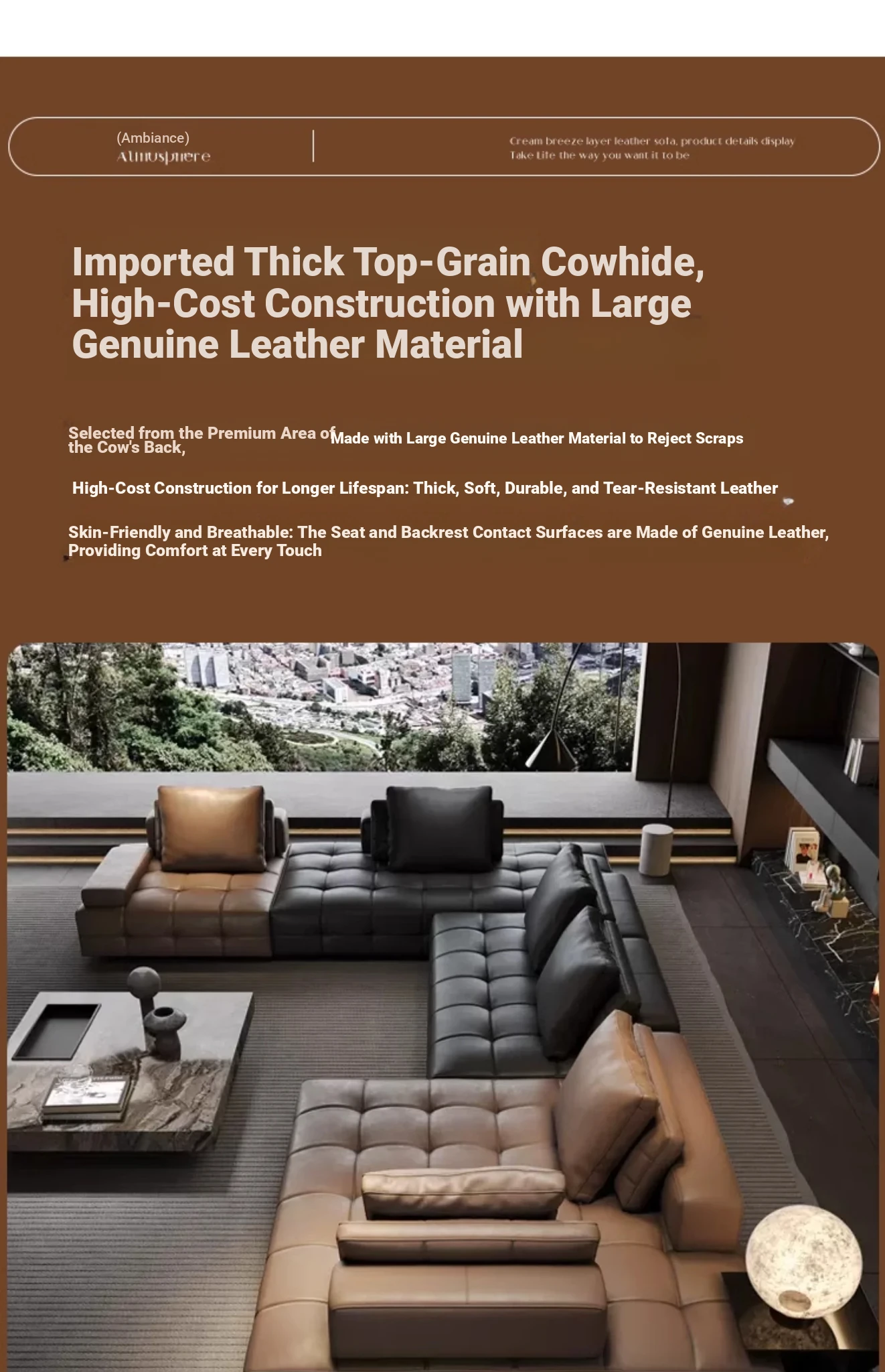 Lawrence Italian Minimalist Genuine Leather Sofa - Premium Top-Grain Leather Modular Combination Sofa for Spacious Living Rooms