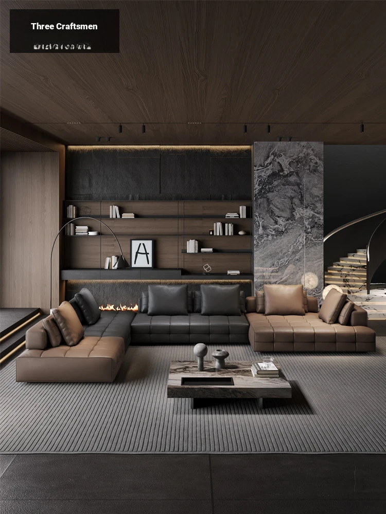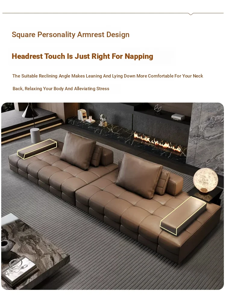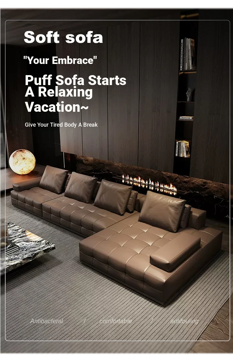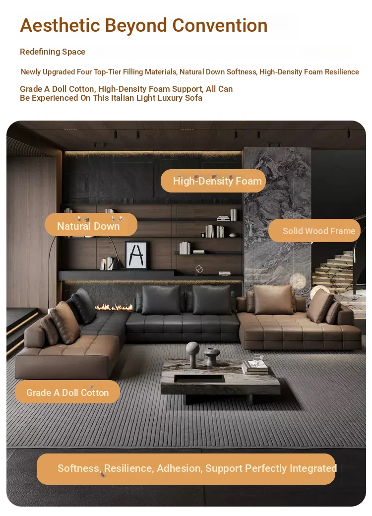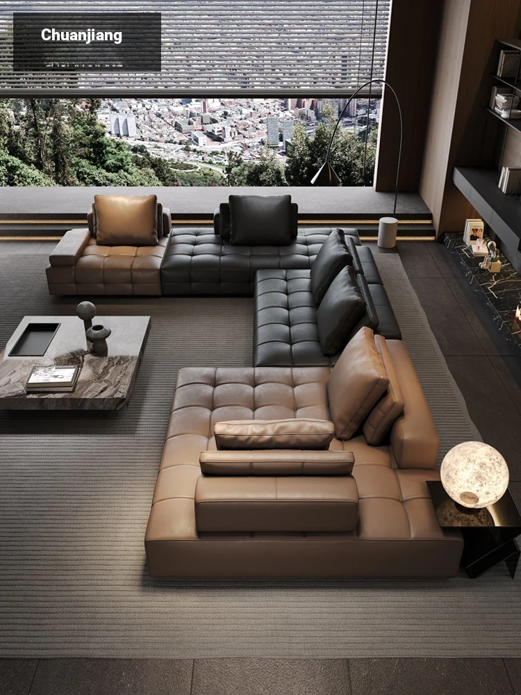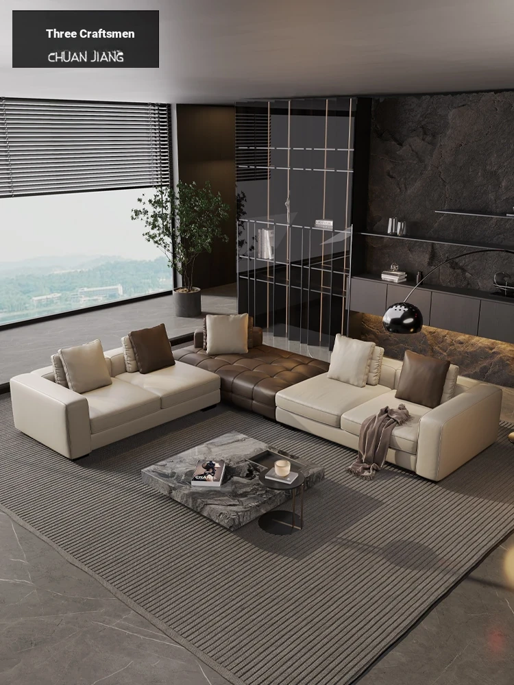 Lawrence Italian Minimalist Genuine Leather Sofa - Premium Top-Grain Leather Modular Combination Sofa for Spacious Living Rooms