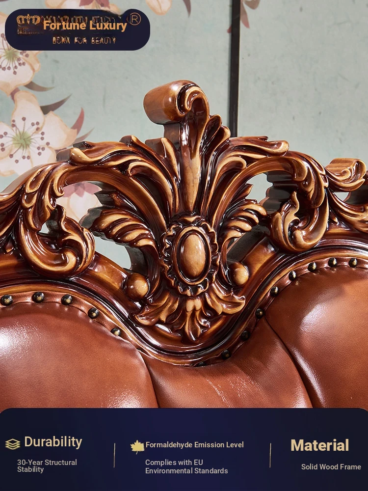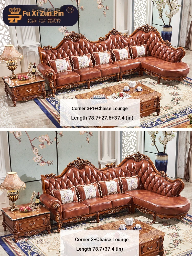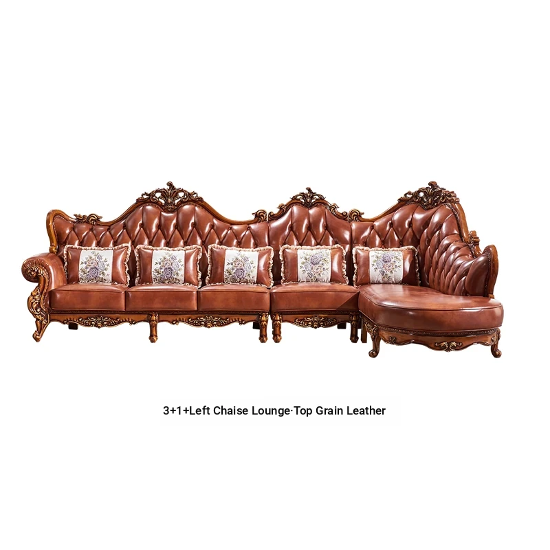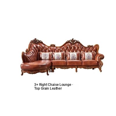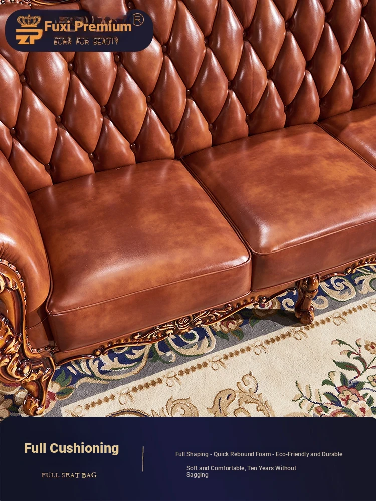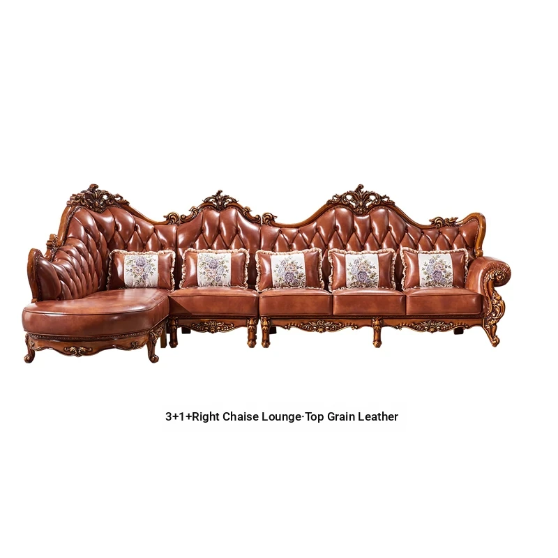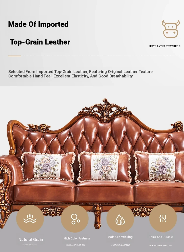 Luxurious European Style Leather Sofa Set - American Solid Wood Corner Sofa for Small Spaces, Made with Premium Top-Grain Cowhide, Perfect for Chic Living Rooms