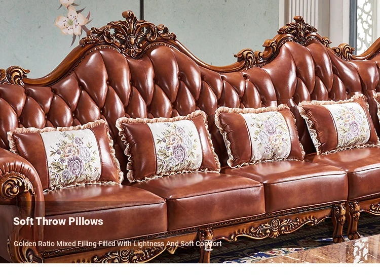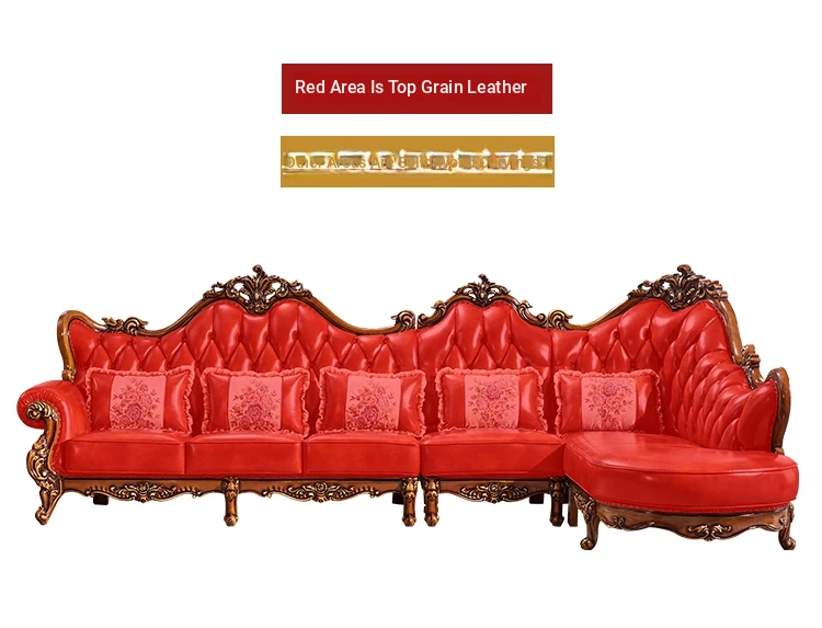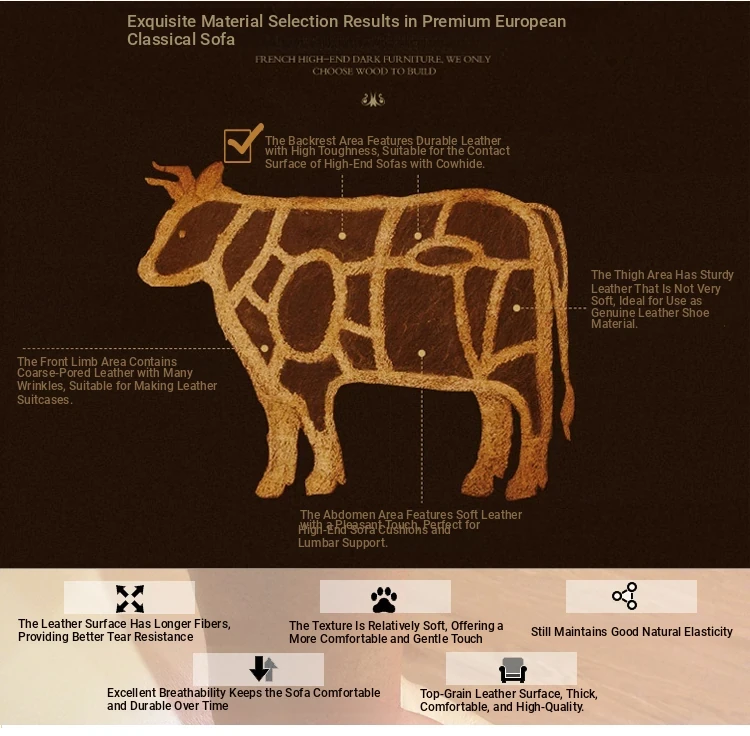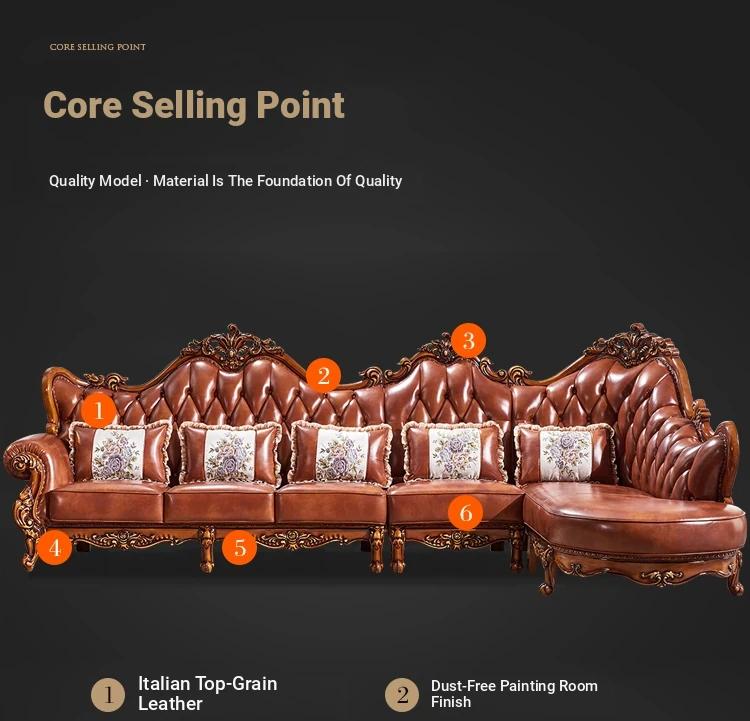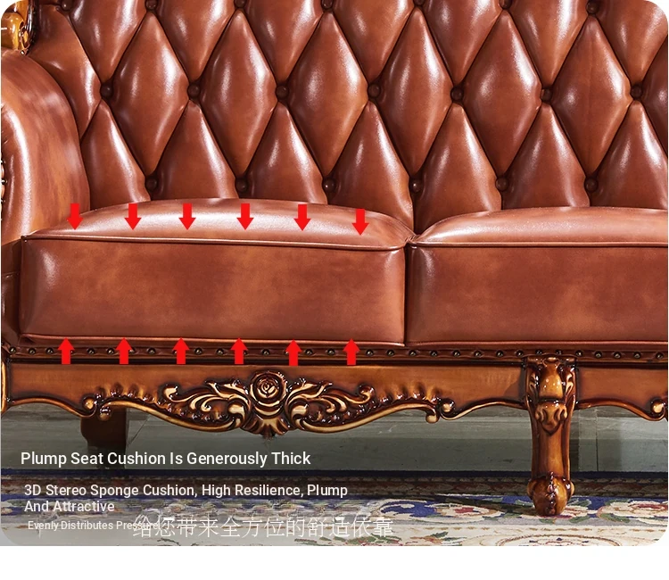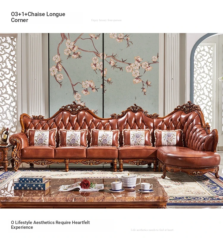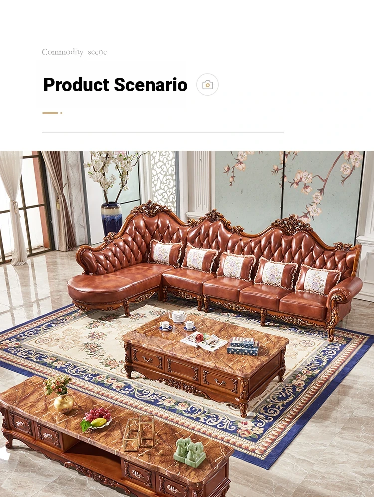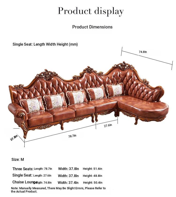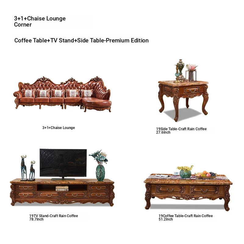 Luxurious European Style Leather Sofa Set - American Solid Wood Corner Sofa for Small Spaces, Made with Premium Top-Grain Cowhide, Perfect for Chic Living Rooms