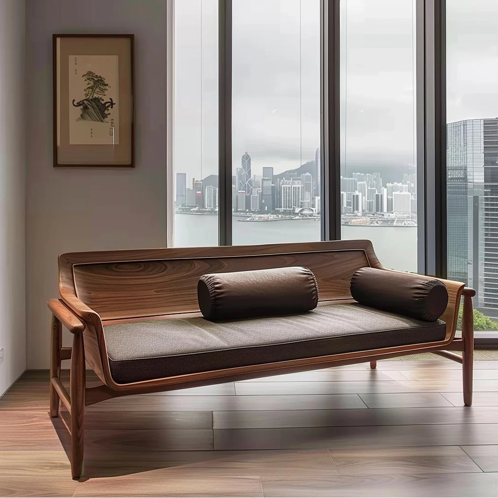 Luxury Modern New Chinese Style Furniture: North American Black Walnut and Ash Wood Luohan Bed for Upscale Offices, Hotels, and Boutique Inns - Exquisite Chaise Lounge