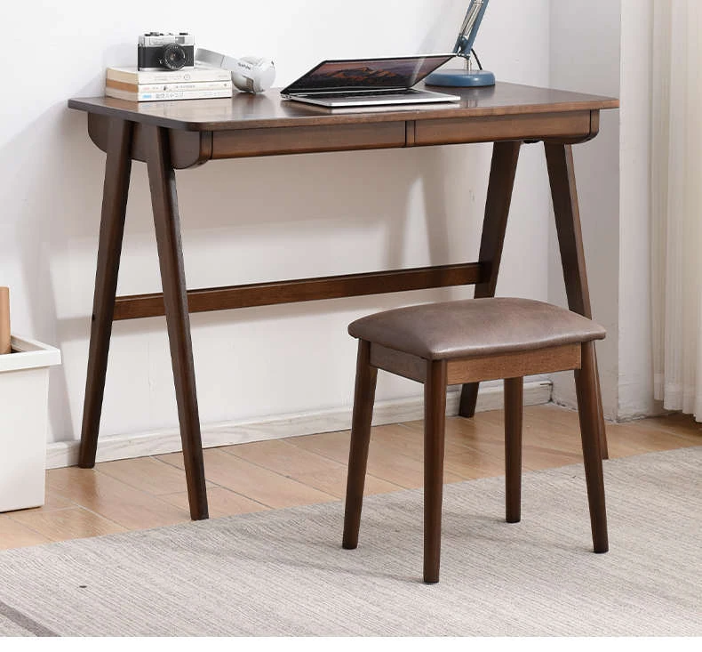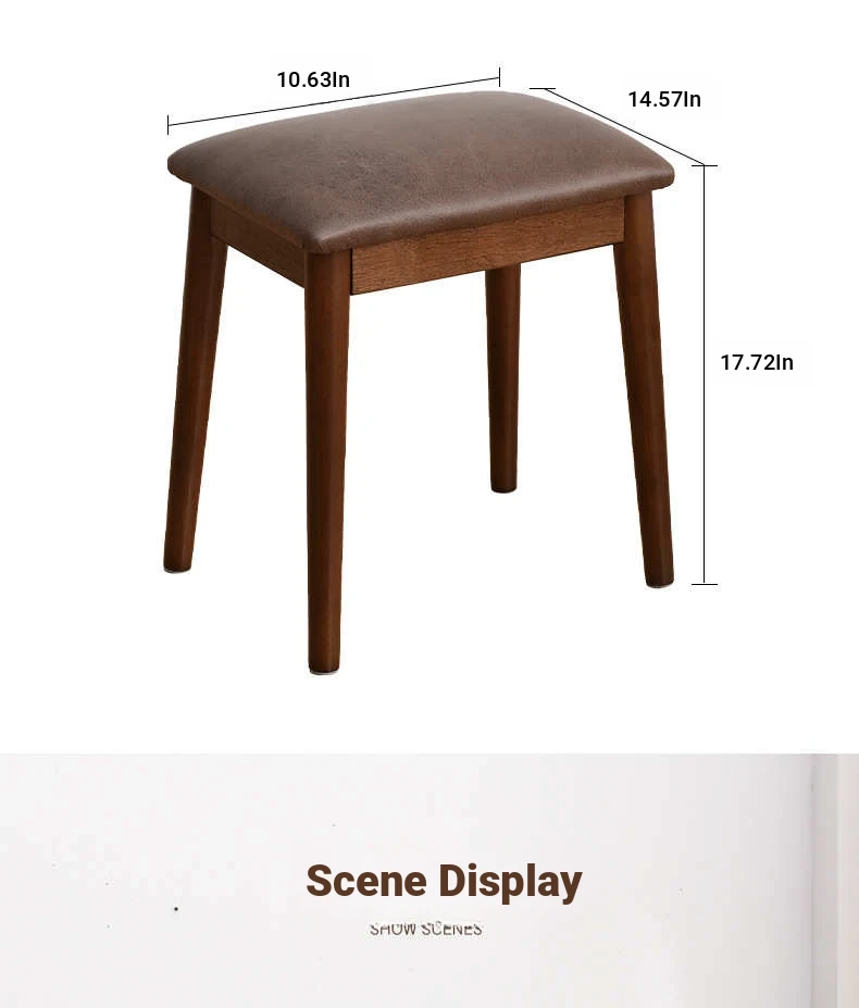 Modern Minimalist Solid Wood Vanity Stool with Soft Cushion - Perfect for Bedroom and Desk, Scandinavian Style Makeup Chair for Home Use